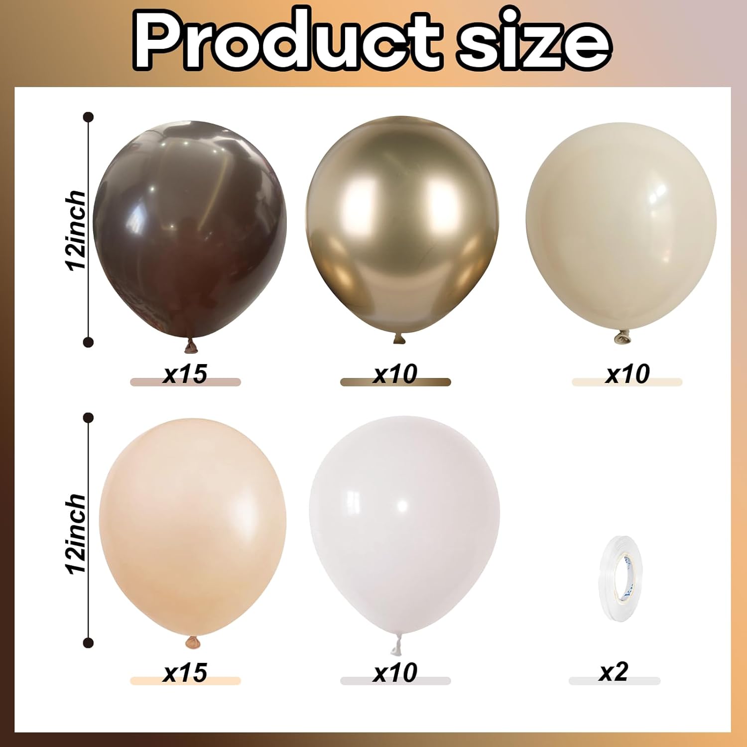 - Multiple creative uses:Our mocha cocoa coffee brown balloons kit are color coordinated, and can create unique balloon arches, bouquets, background walls, children's room decorations, party backgrounds. You can also freely combine globos cafes y beige balloons according to your own creativity and needs to create a unique decorative effect. TIPS: The decorative effect of 2 packs or more balloons will be better!