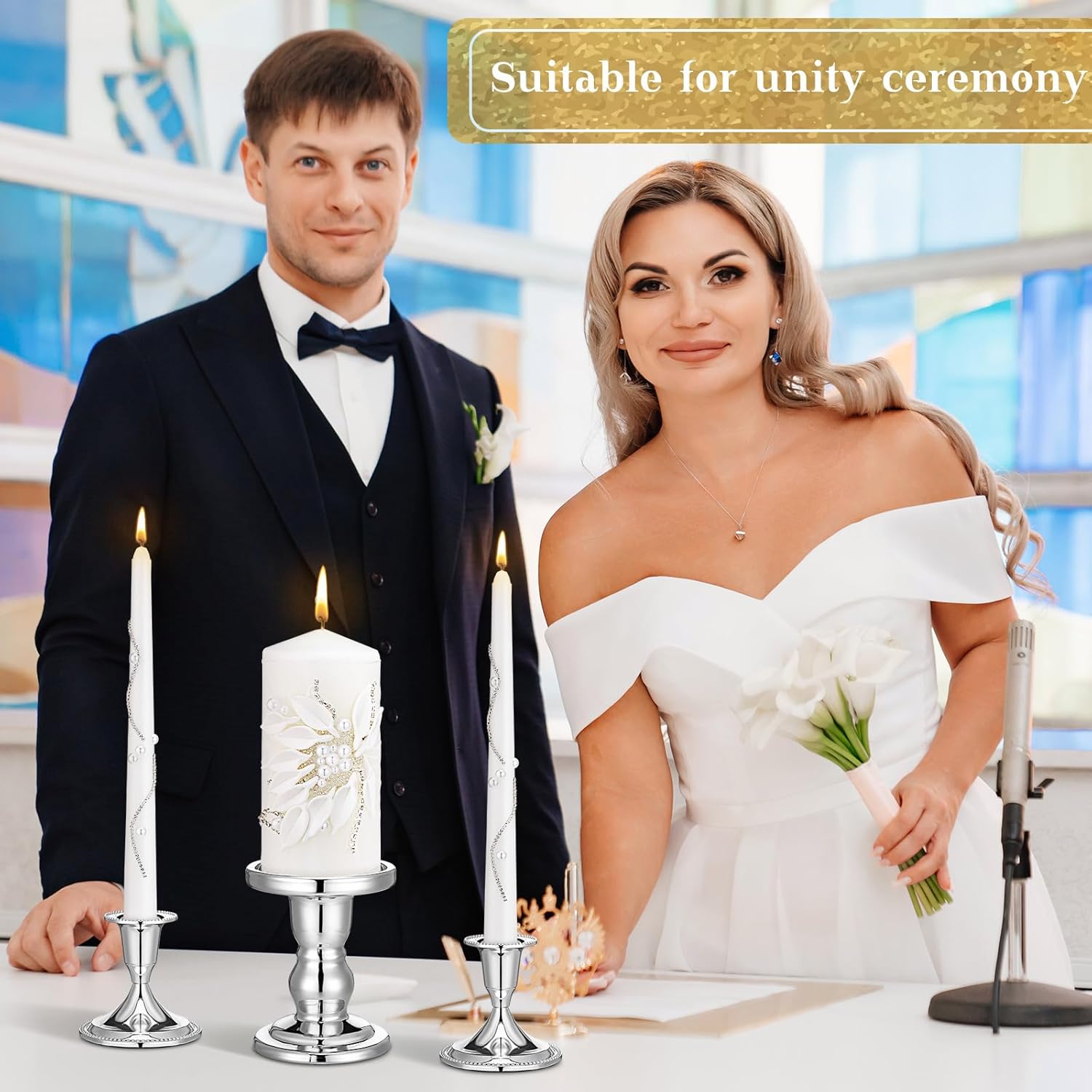 - What You Will Receive: package includes 1 set/ 3 pieces of unity candles and 3 pieces of silver candle holders for pillar candles, which are well matched to decorate the table and party with a romantic atmosphere; They are well packed to ensure a safe arrival
