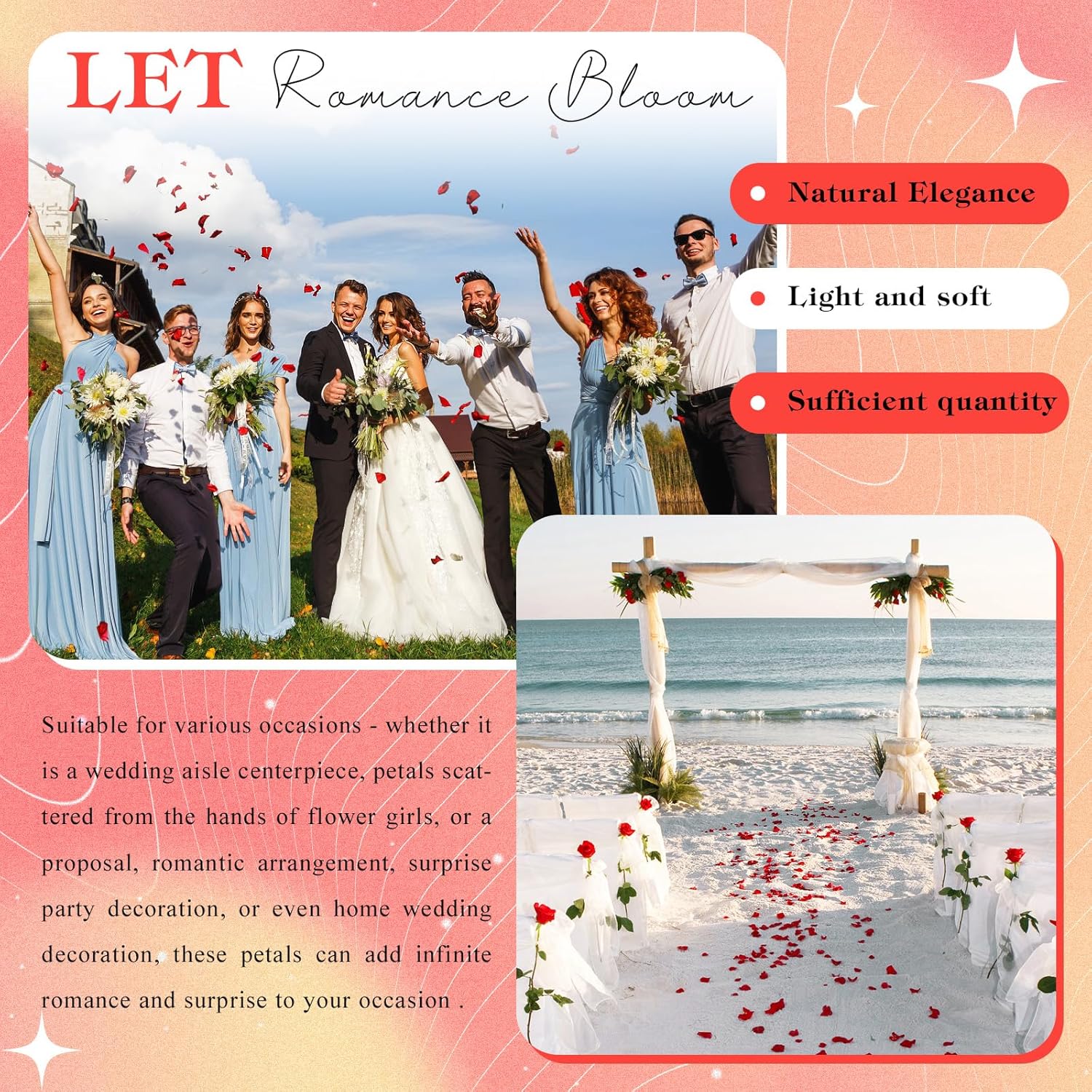 - Versatile Decoration: Each petal is made by natural drying, retaining the soft texture and bright red color of the petals. Whether it is used for laying the floor, decorating the table, or embellishing the romantic garden or hall, it can show the perfect visual effect and bring an unforgettable experience to your romantic moment.