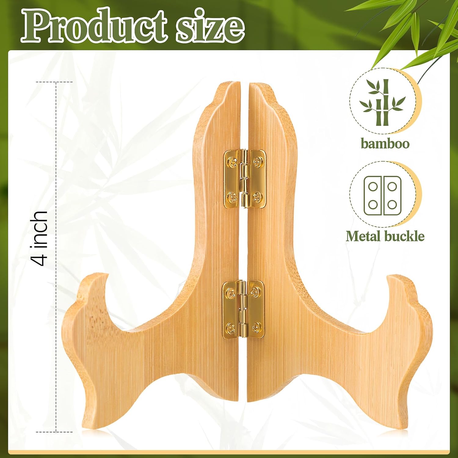 Tatuo 4 Packs Wooden Display Stand Decorative Plate Stands for Display Picture Frame Holder Easels(Wood,4 Inch)