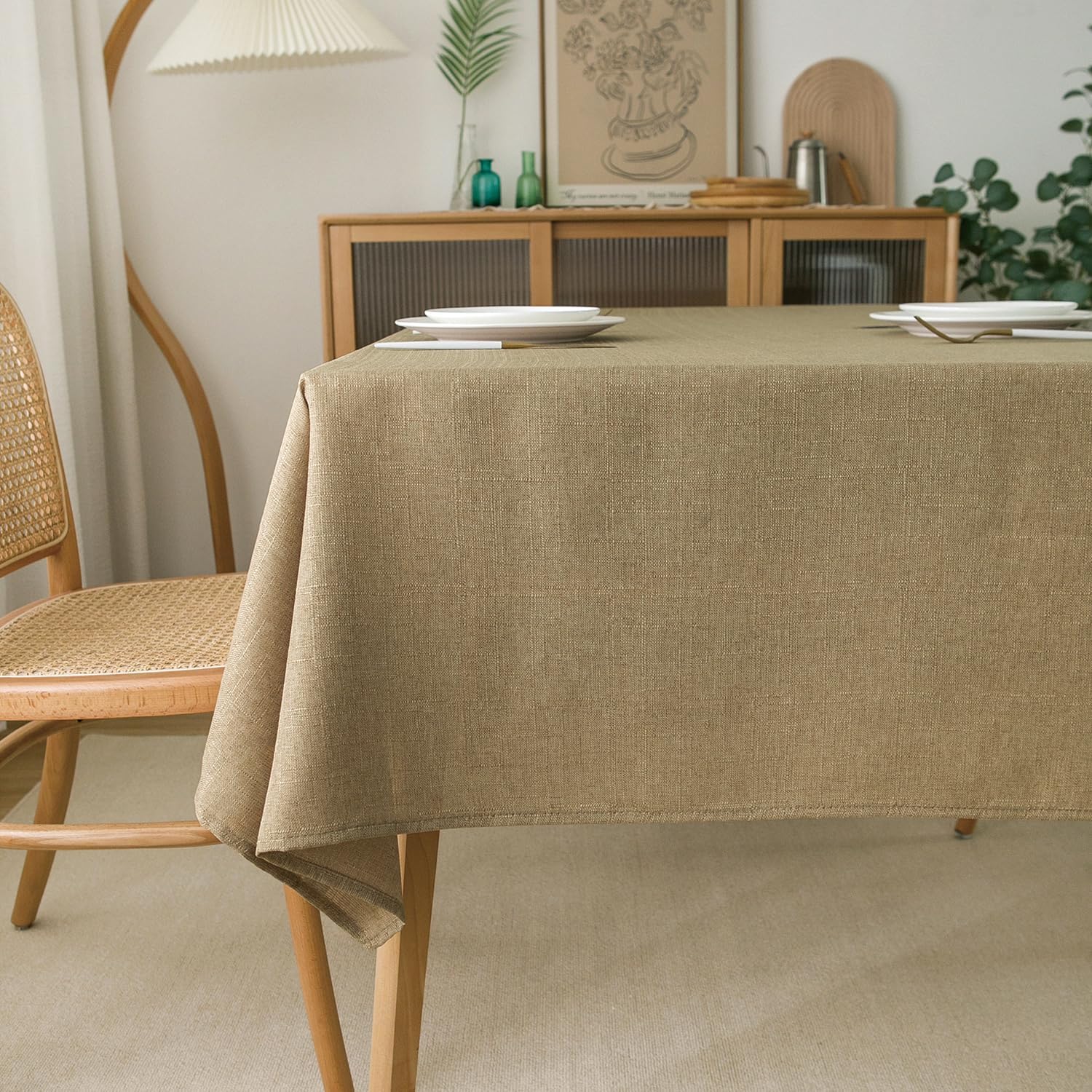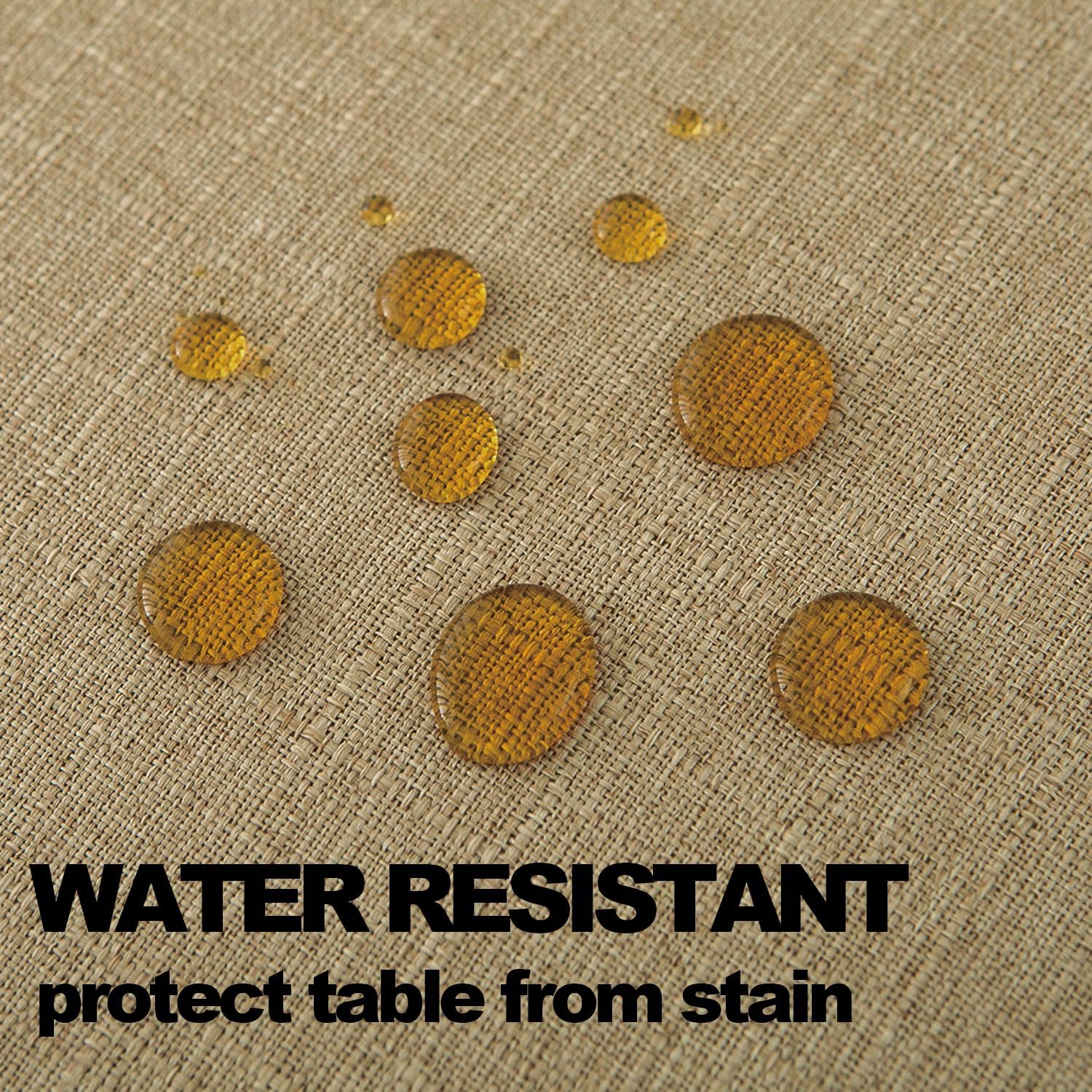 - Waterproof and Wrinkle Resistant: Our faux linen tablecloth featured water resistant, stain and spill proof, easily protect your tables and furniture from scratches, spills, stains and sun rays. You will have a wonderful dinner timing with your family.