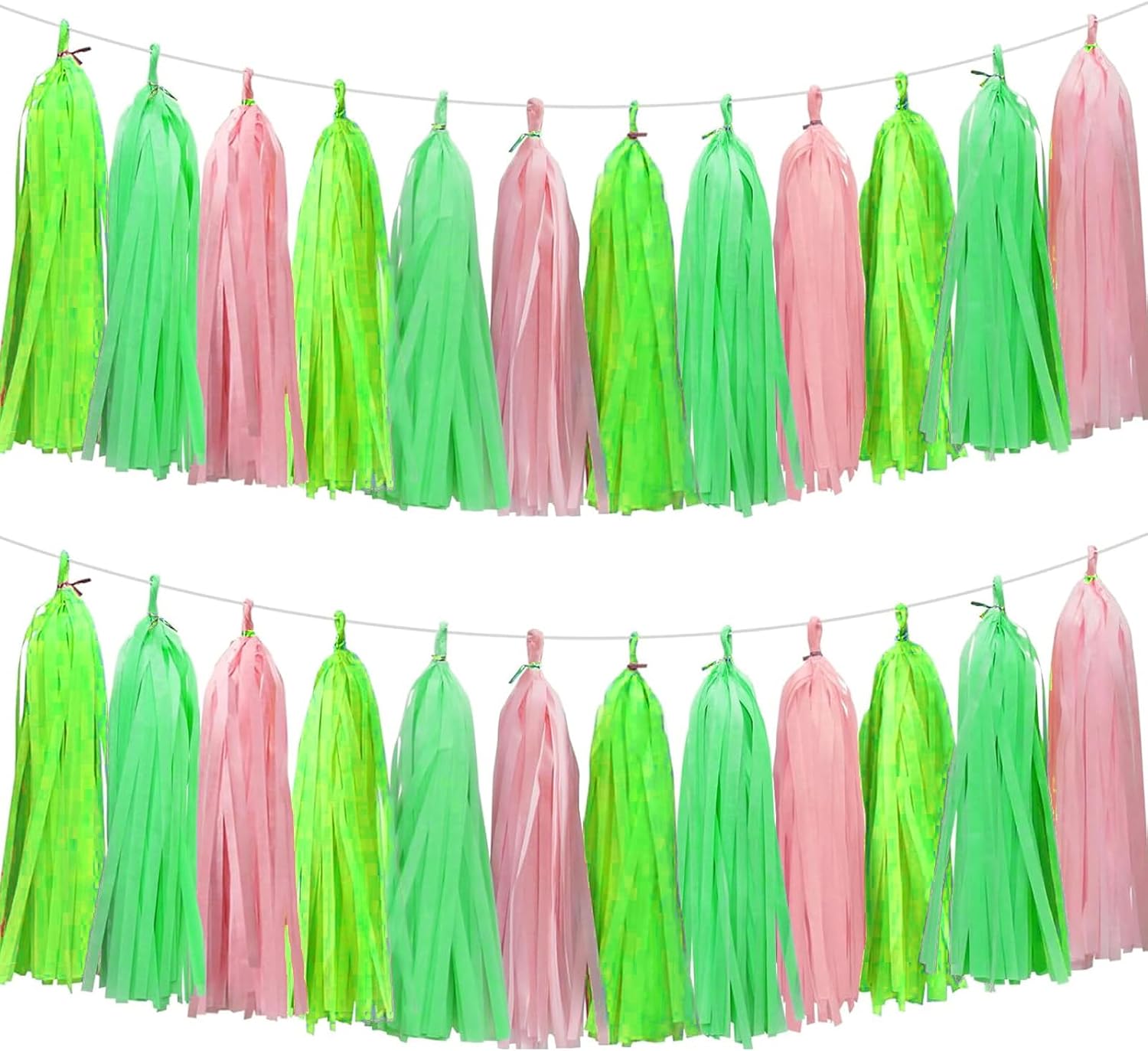 Green Light Green and Pink Tassel Garland Banner Paper Tassels for Party Decorations,Pack of 15