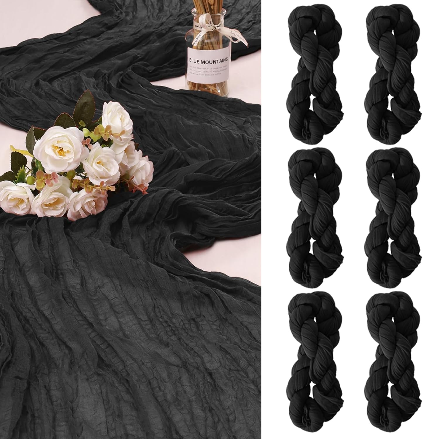 - 【Soft Material】: Made of high quality polyester, soft to touch, comfortable and durable. Wrinkled design cheese cloth farbic, delicate edges and stitches, adopts seamless technique makes this sheer table runner more graceful than traditional fabrics. Our cheesecloth wedding table runners are durable, the colour stays for a long time, does not fade and can be reused.