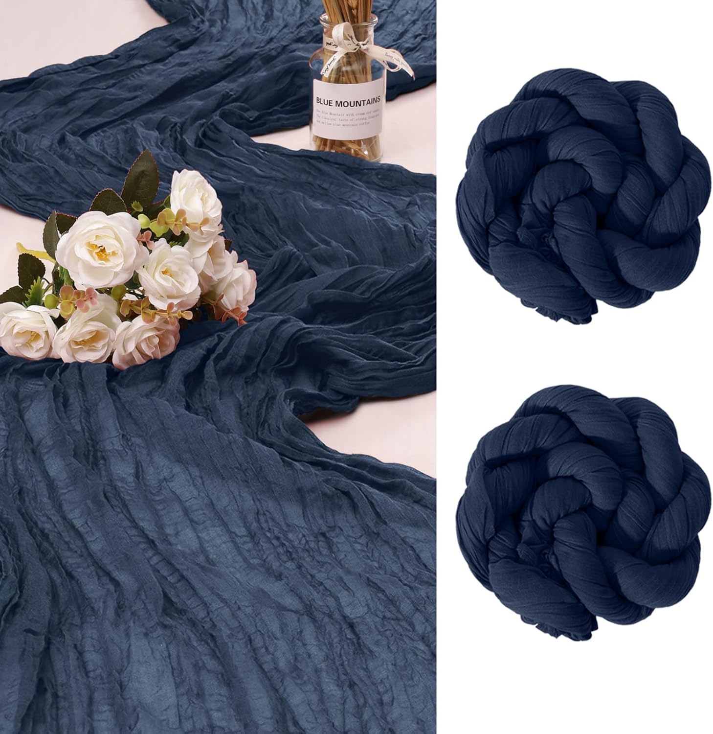 - 【Soft Material】: Made of high quality polyester, soft to touch, comfortable and durable. Wrinkled design cheese cloth farbic, delicate edges and stitches, adopts seamless technique makes this sheer table runner more graceful than traditional fabrics. Our cheesecloth wedding table runners are durable, the colour stays for a long time, does not fade and can be reused.