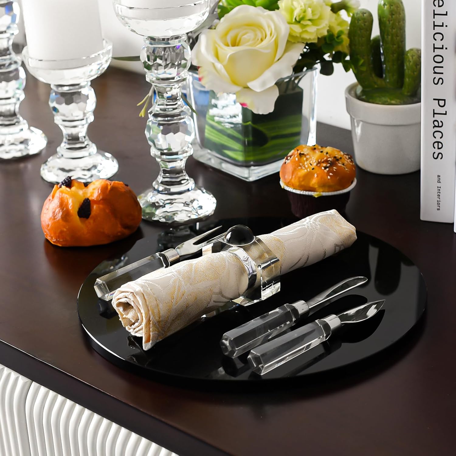 - Gorgeous Design: This huge crystal napkin ring is made of lead-free crystal with a black semi-oval shape set at the top. The glitter is enough to attract anyone's attention, classic and modern design.