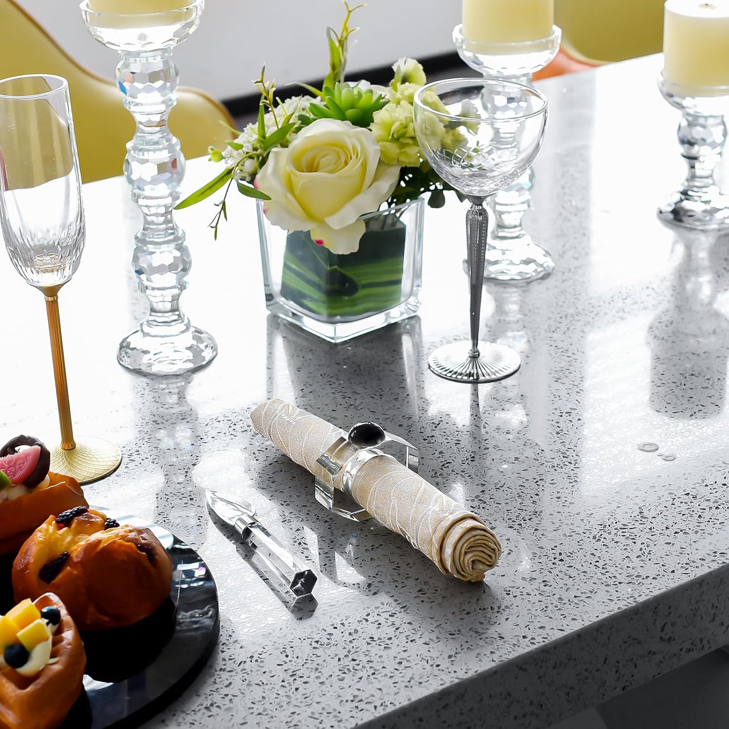 - Work for Any Occasion: Perfect for wedding, dinner party, tea party, bridal shower, special occasions celebration, romantic candlelit banquet, holiday party decor.Ideal crystal napkin rings for home kitchen, hotel and restaurant.