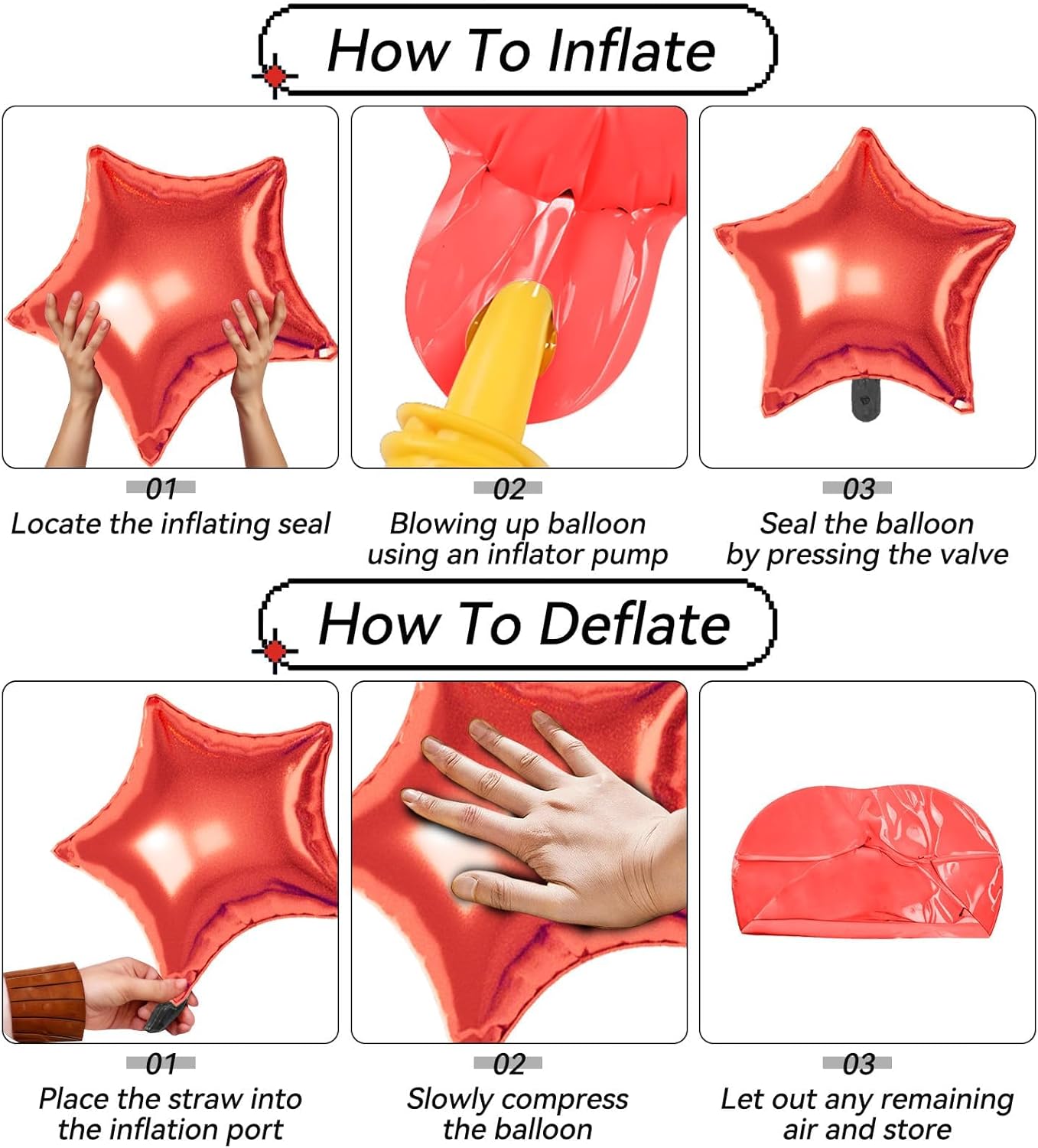 - 【Suitable for All Occasions】These foil balloons are ideal for star decorations, Movie birthday parties, weddings, baby showers, Prom graduations, and gender reveal decorations, adding an eye-catching flair to any occasion, these star foil balloons complement any theme. Use them as a focal point or part of your balloon arch, making your special day unforgettable.