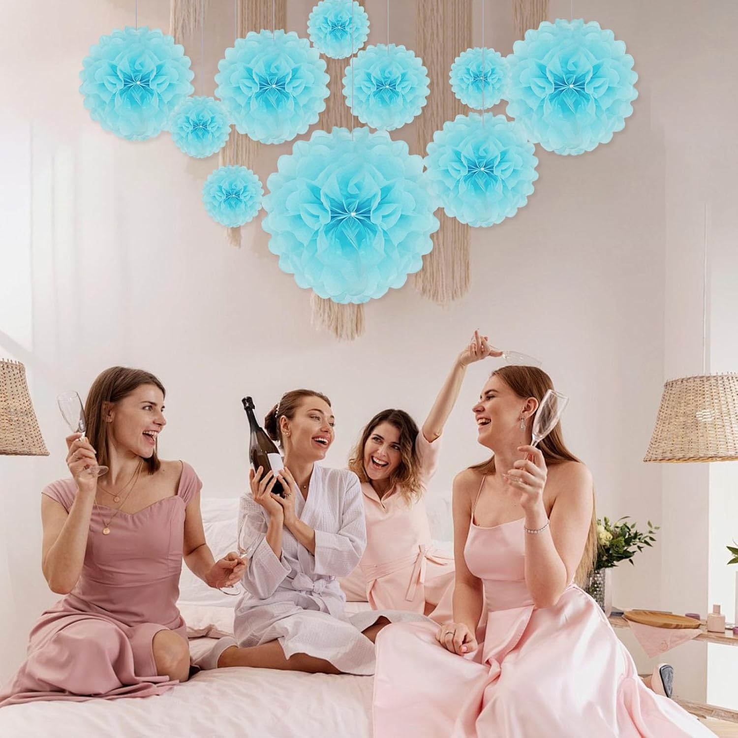 - 【Large Set】20 Pieces light blue paper flower balls include 6 of 6-inch, 6 of 10-inch, 5 of 12-inch, and 3 of extra-large 14 inch paper pom pom flowers.