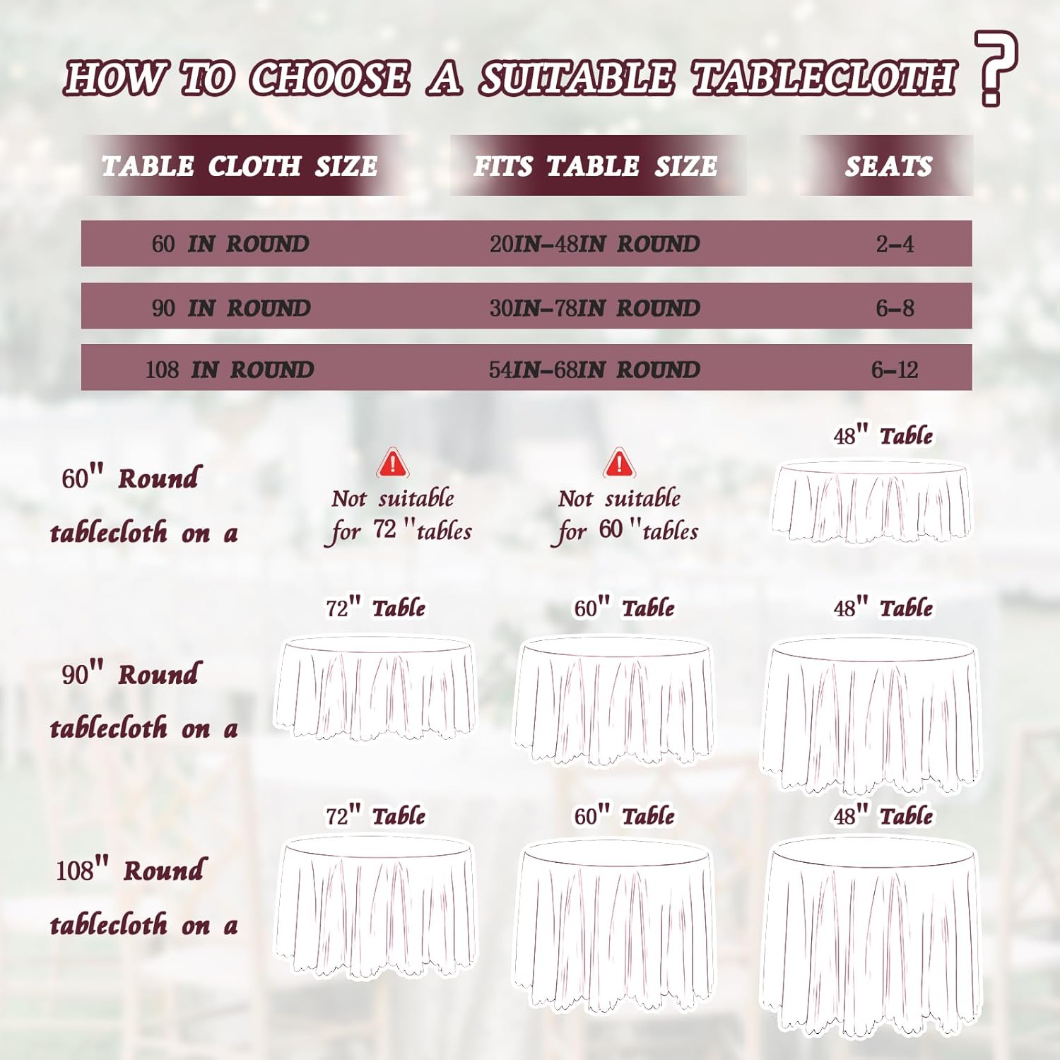 - Easy to maintain: Round table cover can be machine washed and hand washed, making them easy to clean and dry. After cleaning, dry at low temperature, preferably iron to maintain cleanliness, easy to maintain and sufficiently fluffy, with a beautiful appearance.