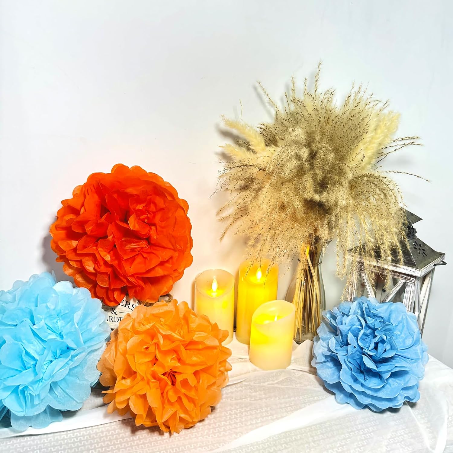 Capesaro Blue and Orange 12PCS Paper Pom Poms Party Decorations for Girl Birthday College Graduation Decoration, Hanging Decor Tissue Paper Flowers