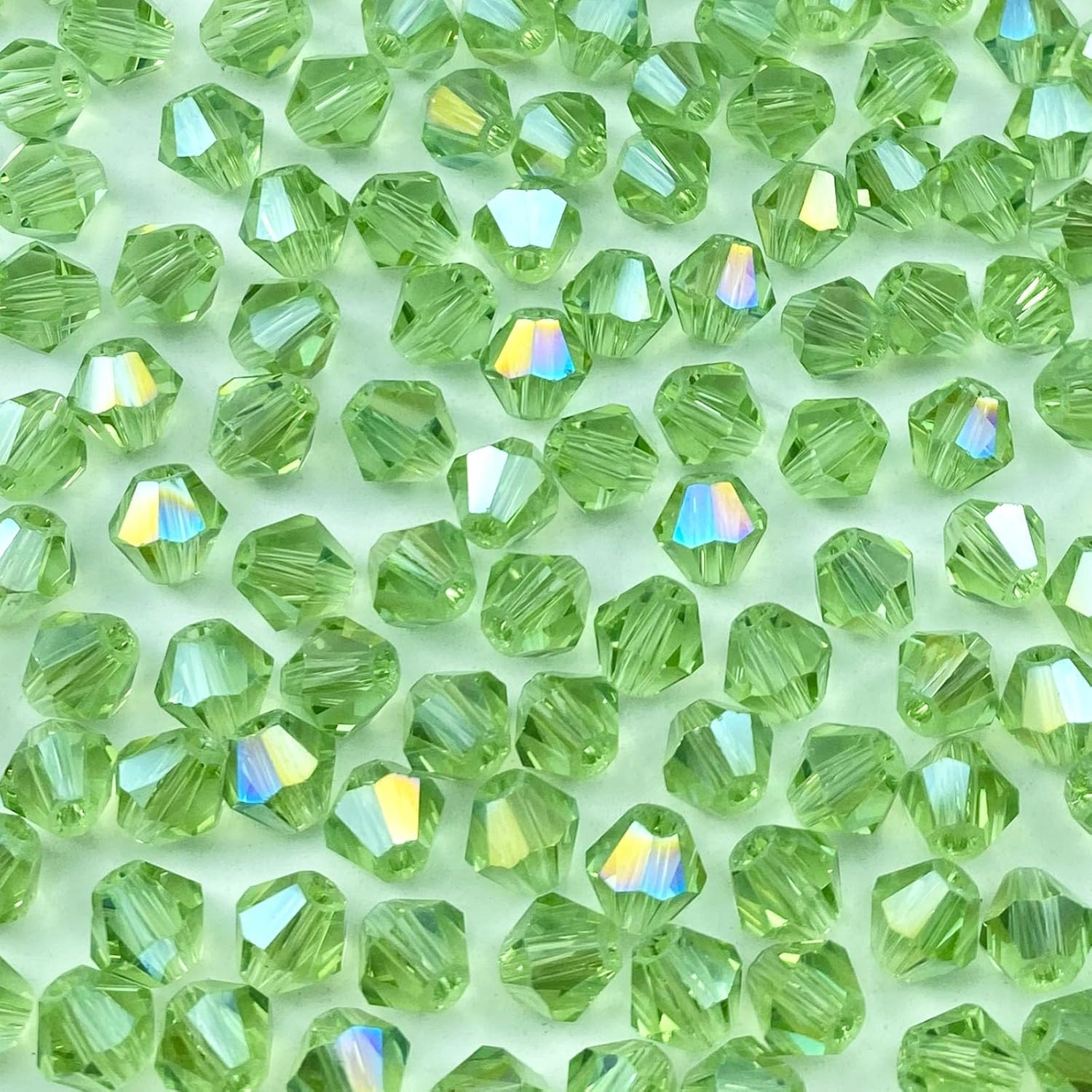 400pcs 4mm Bicone Crystal Glass Beads Loose Spacer Beads Faceted Craft Beads for Jewelry Making DIY Necklace Bracelet Earring Wind Chimes Suncatchers Ornamen(Light Green AB)
