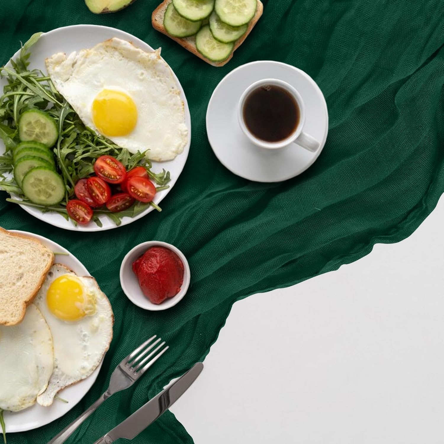 12 Pack Cheesecloth Table Runner 10Ft Christmas Gauze Boho Table Runners for Wedding Decor Bridal Shower Decorations Baby Shower Party(35" x 120")(Emerald Green)