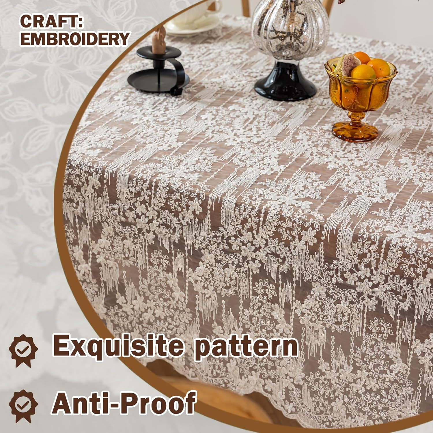 Lace Embroidered Tablecloth. Square Lace Vintage Tablecloth Dustproof Table Protector for Kitchen Dining Room Party Banquet Home Picnic Wedding Decoration (Creamy White 53×53 inch)