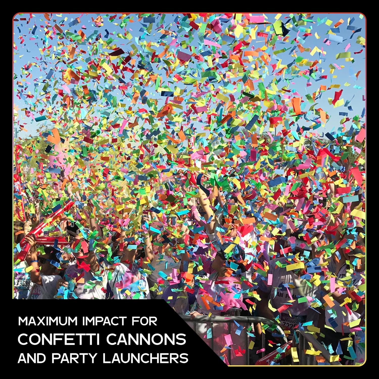 - Classic Shape Designed for Wide Dispersion: Measuring 2" x ¾", our confetti paper is precision-cut to create a graceful floating effect. Whether tossed by hand or launched from cannons or flick sticks, it disperses beautifully across stages, dance floors, and party spaces for a stunning visual impact.