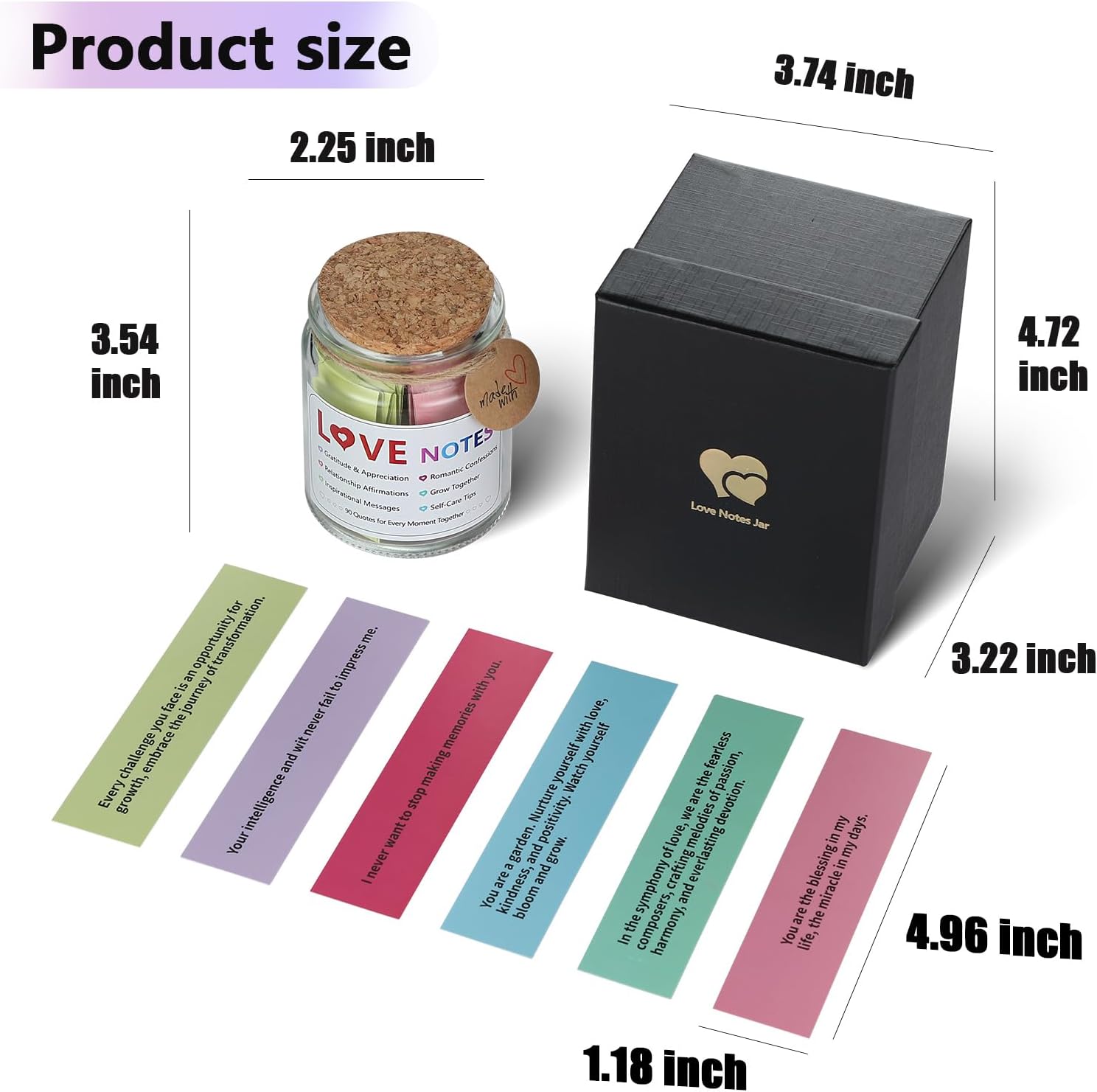 - Thoughtful Gift of Love: A wonderful gift for anniversaries, Valentine's Day, or just to show your love spontaneously. The "Love Notes" glass jar is a gift that keeps on giving. It's a tangible expression of your feelings that your partner can cherish. They can display it in their office or any place they frequent, and every time they look at it, they'll be reminded of your love. It's a unique and memorable present that stands out from the traditional gifts