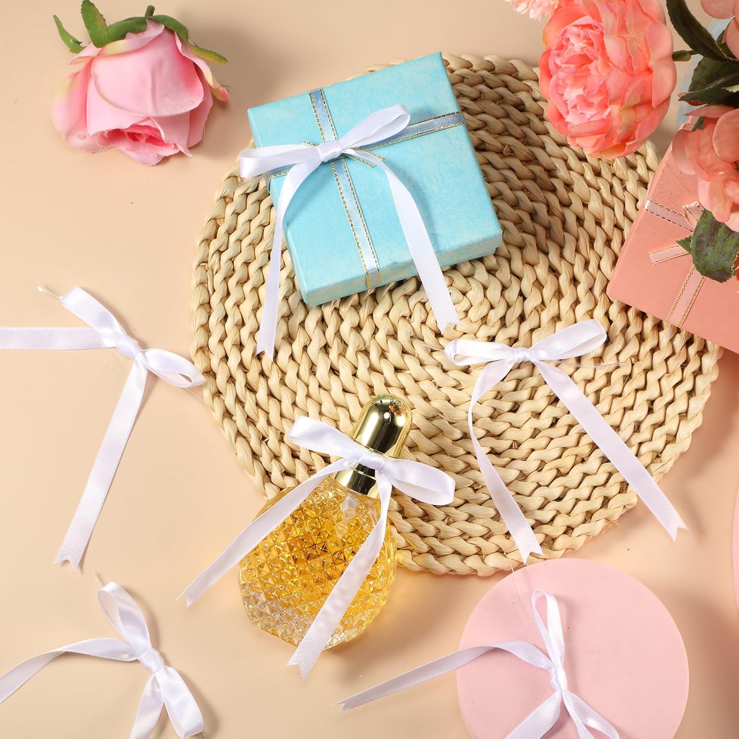 - White Twist Tie Bows: our package includes 50 white ribbon bows and 50 twist ties; This set will easily meet your various needs for decoration or DIY projects; The dimensions of our bow are approximately 3 x 4 inches/ 8 x 11 cm; The decent size is suitable for decorating gifts, packages, and other items; You can have fun with family and friend making eye catching decorative pieces by DIY
