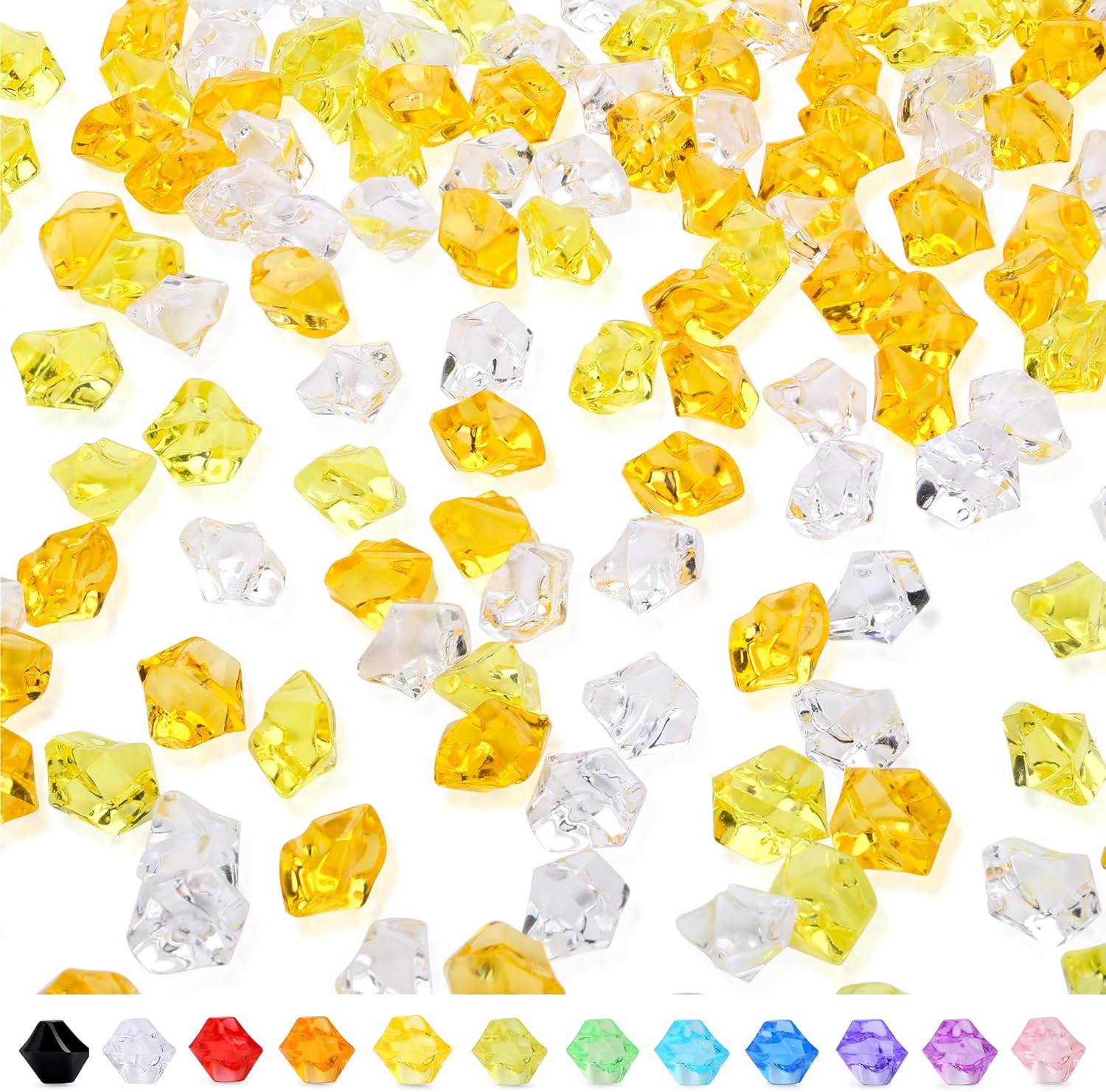 - 【Gradient Yellow】The package contains about 500PCS of acrylic ice rocks. Each acrylic ice rock is made of nice quality acrylic, non-toxic and odorless.(This set contains 3 colors: yellow, lemon yellow, clear. The quantity of the three colors is random.)