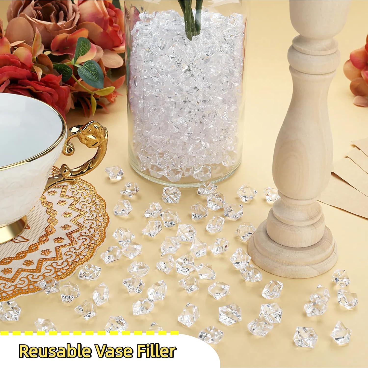 - 【Tips】Although acrylic vase fillers are lightweight, they will sink in water and will not float. Also, they cannot be used to cool drinks or be eaten! Do not eat them by mistake!