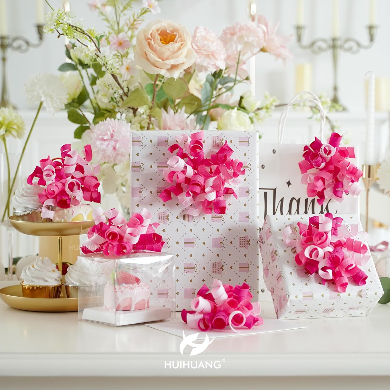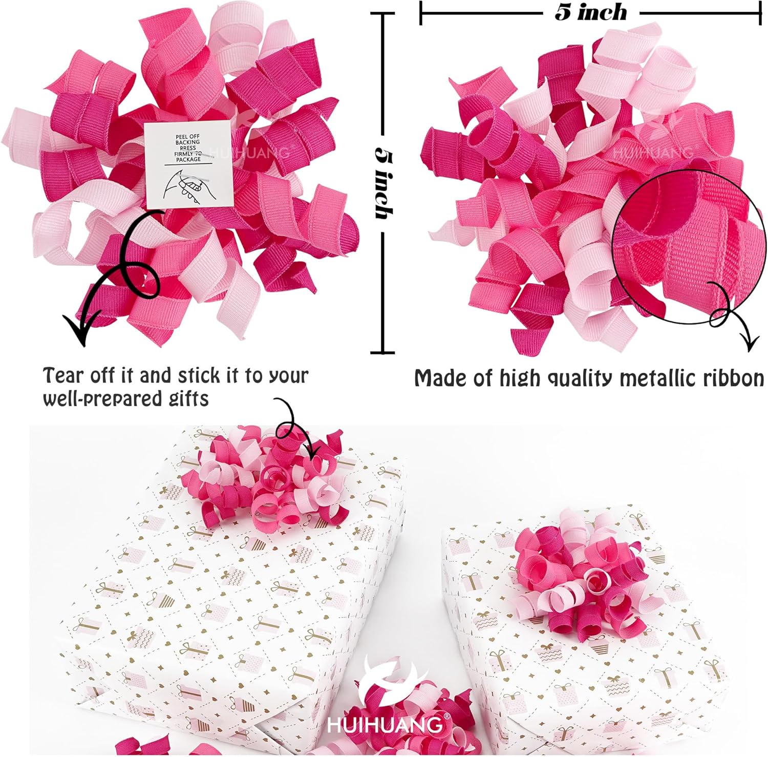 HUIHUANG Pink Bows for Gift Wrapping Self Adhesive Curly Gift Bows Fushcia/Pink/Hot Pink Bows for Presents, Birthday, Wedding Baby Shower Party Favors, Treat Bags- 6 Counts