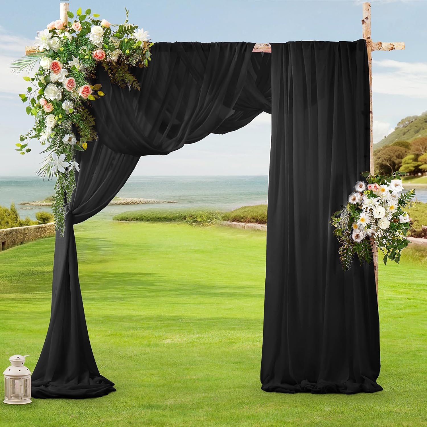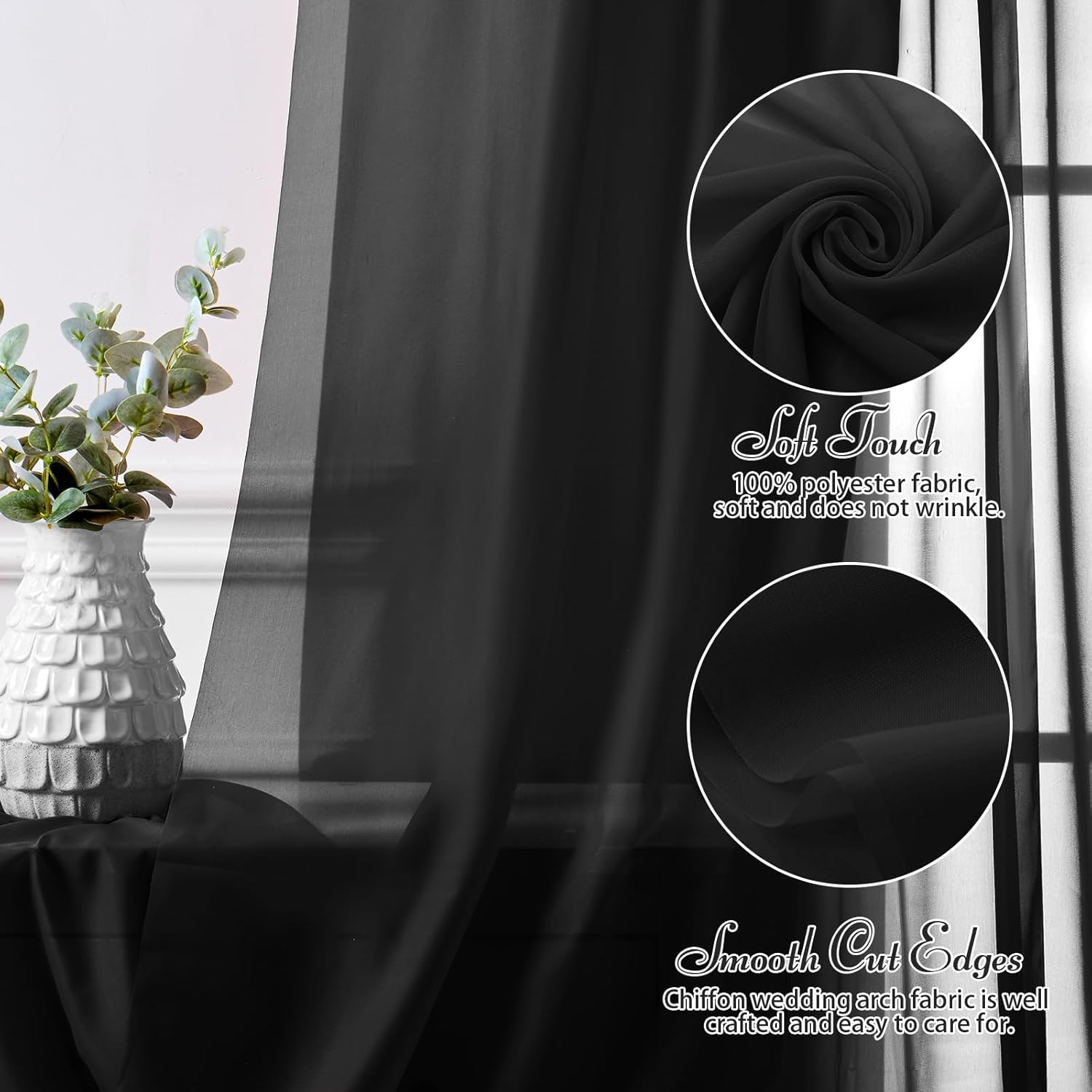 SiinvdaBZX 2 Panels Wedding Arch Draping Fabric 30" x 240" Black Polyester Chiffon Fabric for Multiple Occasions