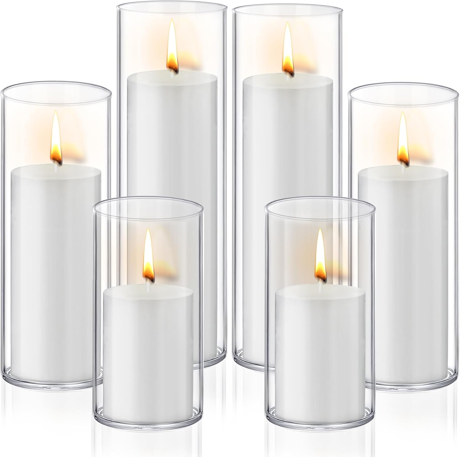 - 【Multi-Size】You will get 6 glass cylinder holders and 6 pillar candles,the diameter of glass candle holder all in 2.57 inch, the height is 4.72 inch,5.91 inch,and 7.82 inch, the diameter of all pillar candle holders is 1.97 inch,the height is 2.95 inch, 3.94 inch, and 5.91 inch, variety of sizes perfect for your all decoration needs.