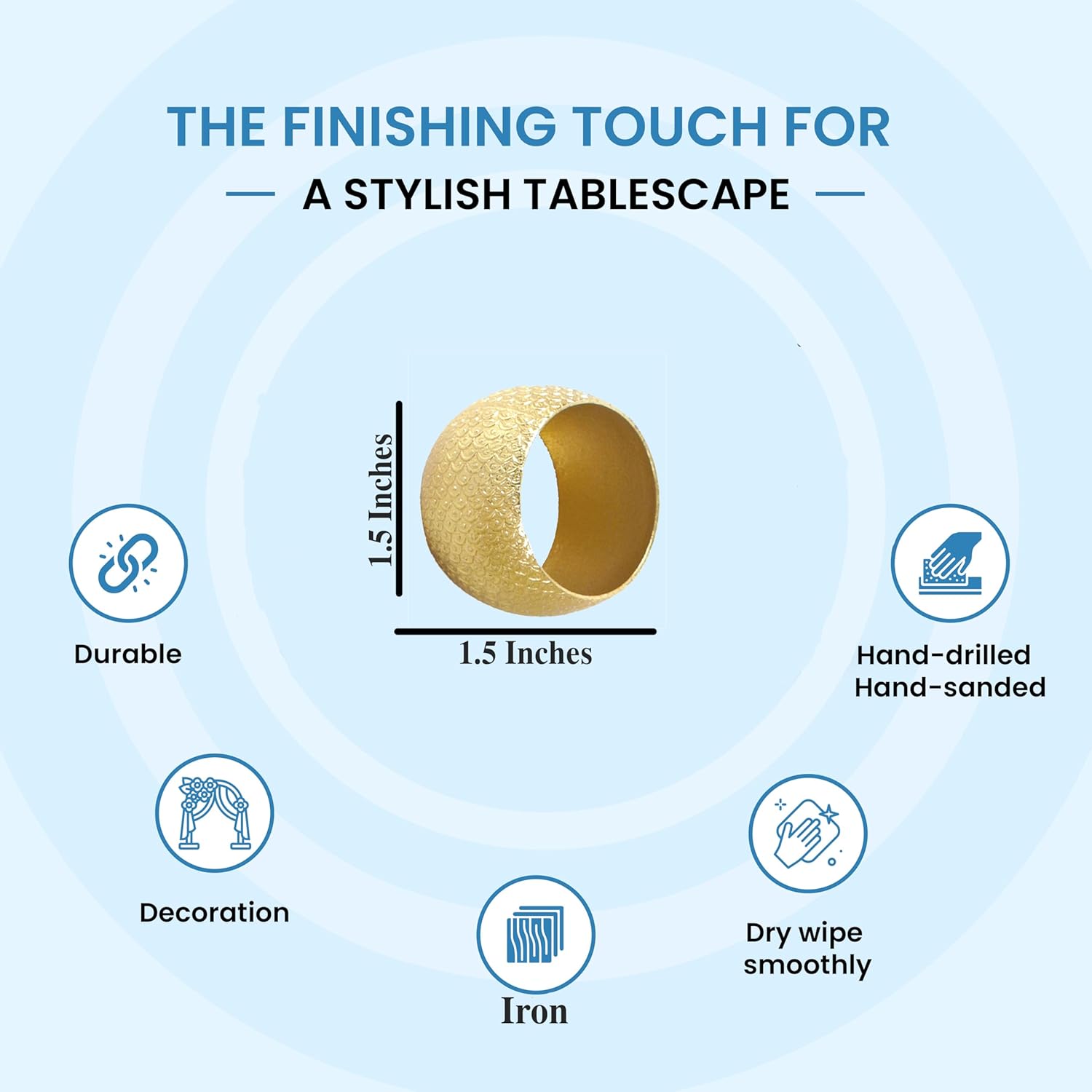 Napkin Holders for Cloth Napkins Set of 12 - Lightweight Metal Round Napkin Holder Hammered Textured,Elegant Table Décor for Weddings, Dinners, Holidays, Events, Kitchen & Dining (Gold) - CLEENTABLE