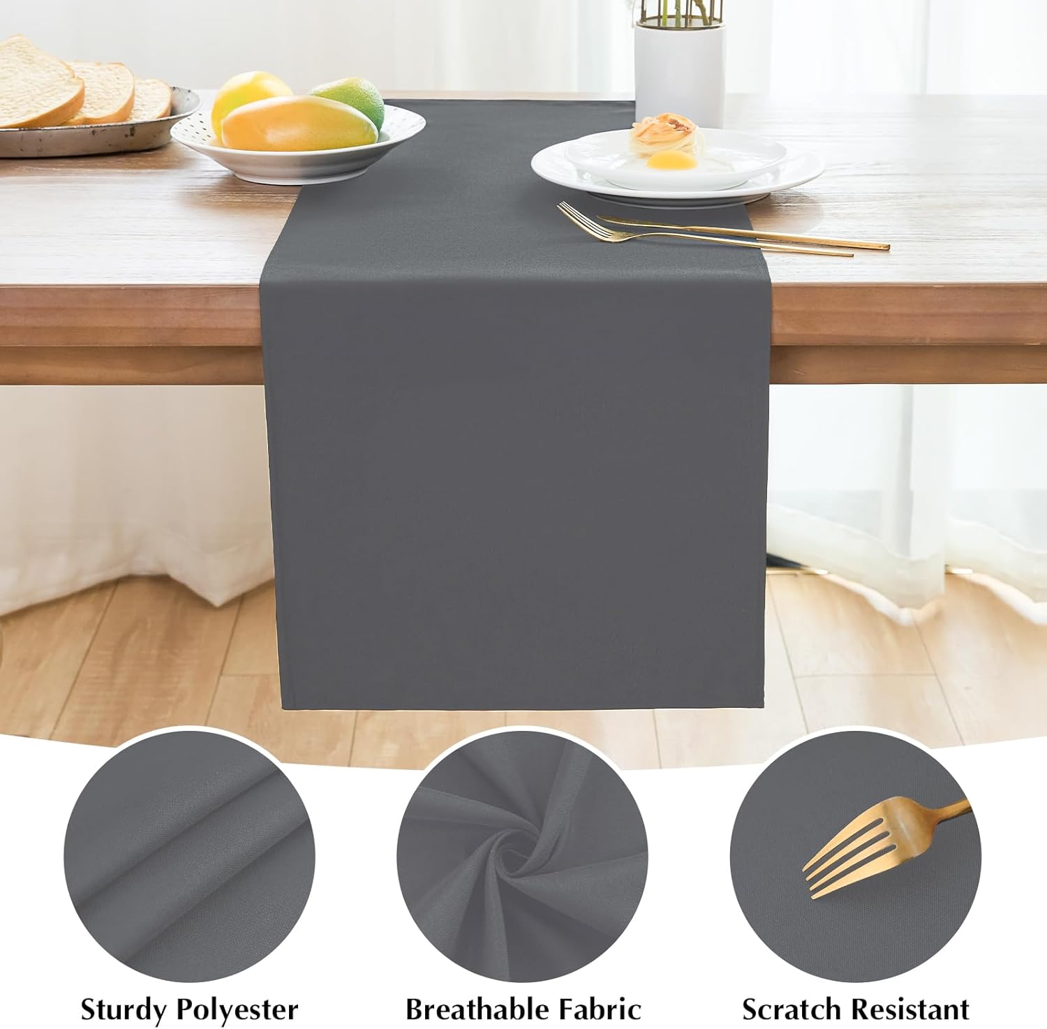 - Polyester Material: These hemmed table runners are made of polyester, which makes them soft, lightweight and serviceable. Our solid table runners are washable, scratch-resistant and not easily broken. Use the table runner to decorate your table for sophisticated look