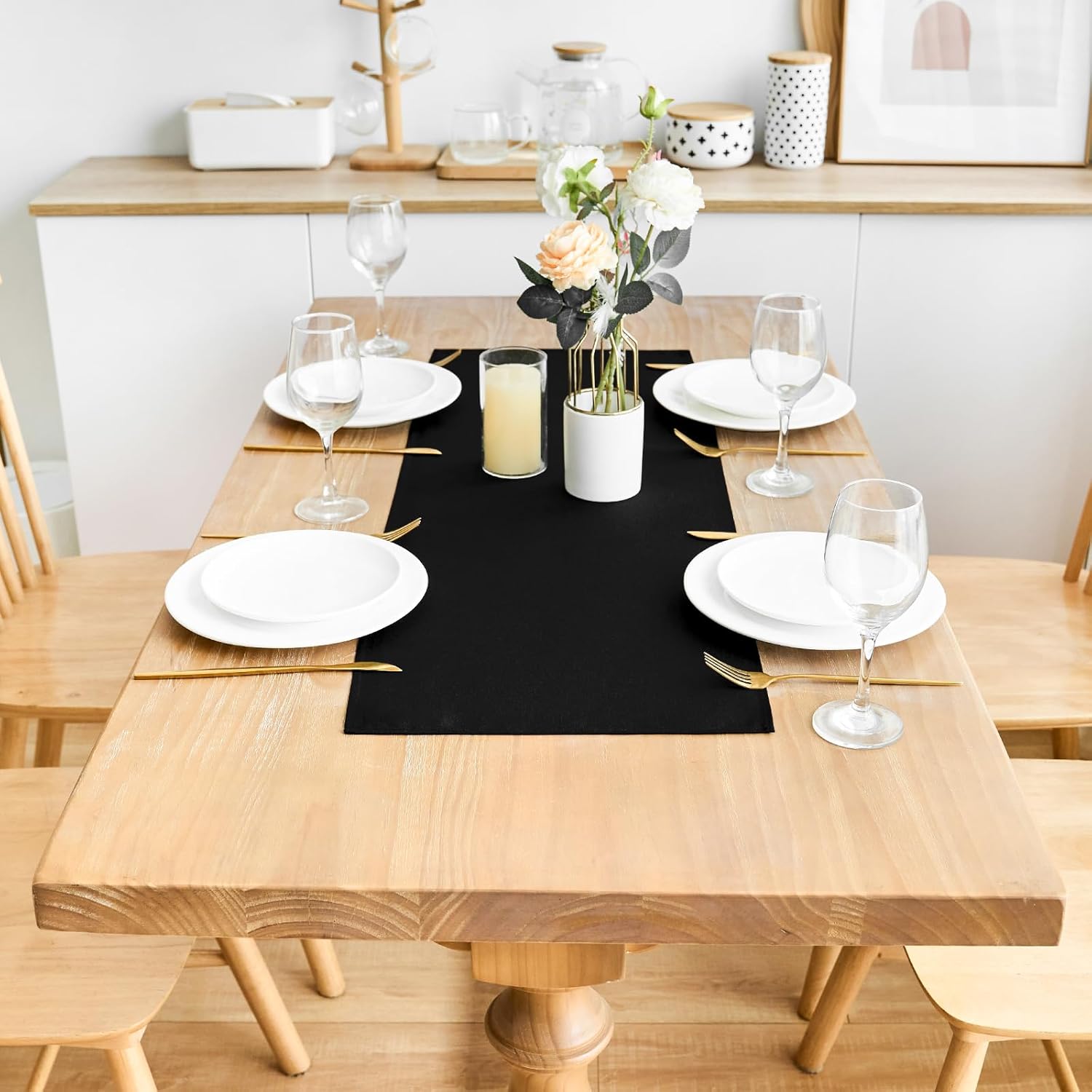 2 Pack Black Small Short Table Runner 12 x 36 Inch Solid Color Runners Coffee Table Dresser for Daily Party Home Decoration