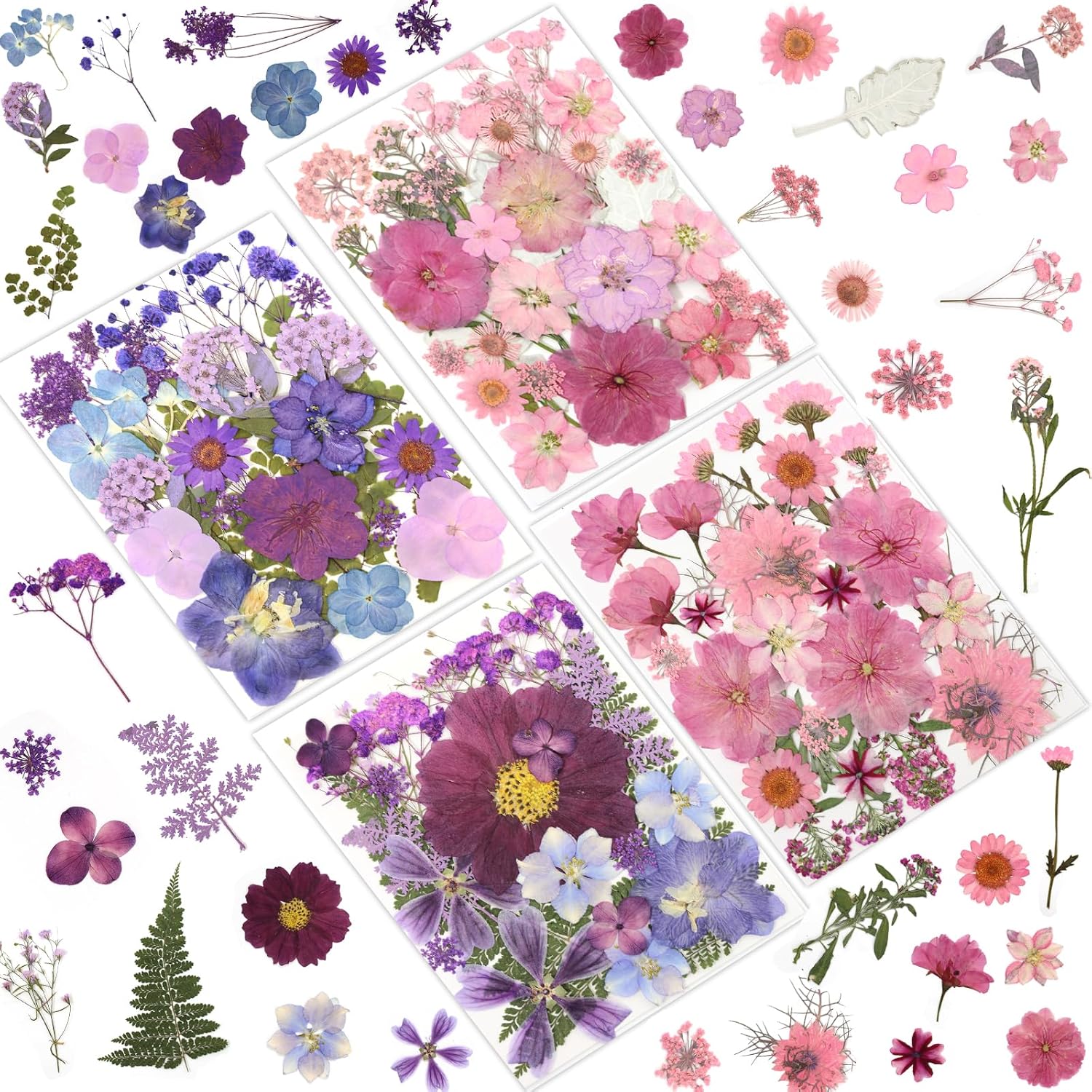 - Vibrant Pressed Botanicals: 100 Pcs preserved pressed flowers with fade-resistant pink/purple/blue hues. Industrially dehydrated & stabilized, these non-perishable botanicals maintain color integrity for resin art and DIY crafts