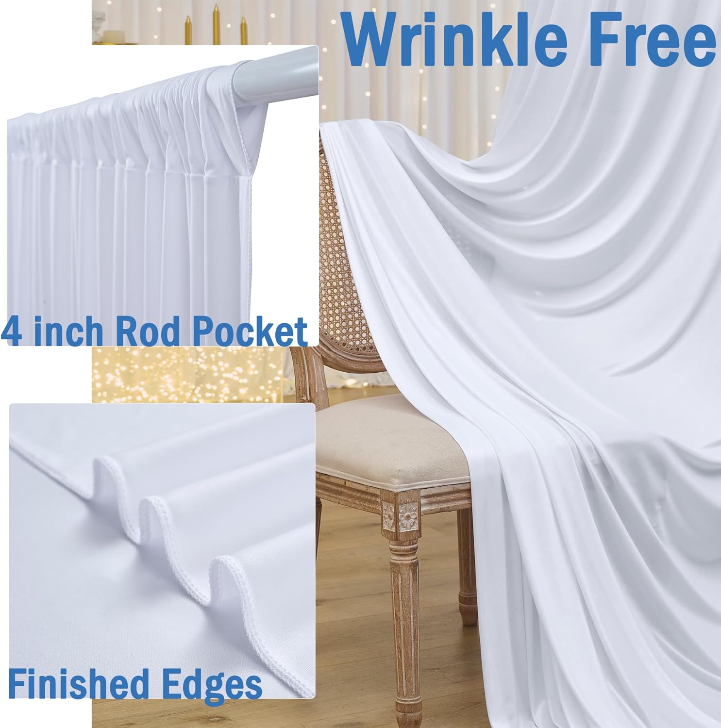 - 10ft Fabric Drape white Backdrop Curtain Wide Compatibility: Polyester photo drape white backdrop curtain can be used for parties, baby shower, wedding, birthday party, photography, bridal shower, gender reveal, zoom, princess party, engagement party, baptism, candy buffets, dessert table, sweet table, background, photo booths, photoshoot, ceremony, anniversary, graduation, home decorations, holiday party, stage curtain or just to mask unsightly areas