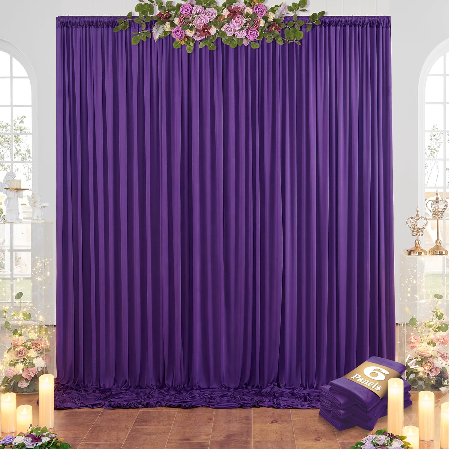 - 10ft Fabric Drape Purple Backdrop Curtain Wide Compatibility: Polyester photo drape Purple backdrop curtain can be used for parties, baby shower, wedding, birthday party, photography, bridal shower, gender reveal, zoom, princess party, engagement party, baptism, candy buffets, dessert table, sweet table, background, photo booths, photoshoot, ceremony, anniversary, graduation, home decorations, holiday party, stage curtain or just to mask unsightly areas