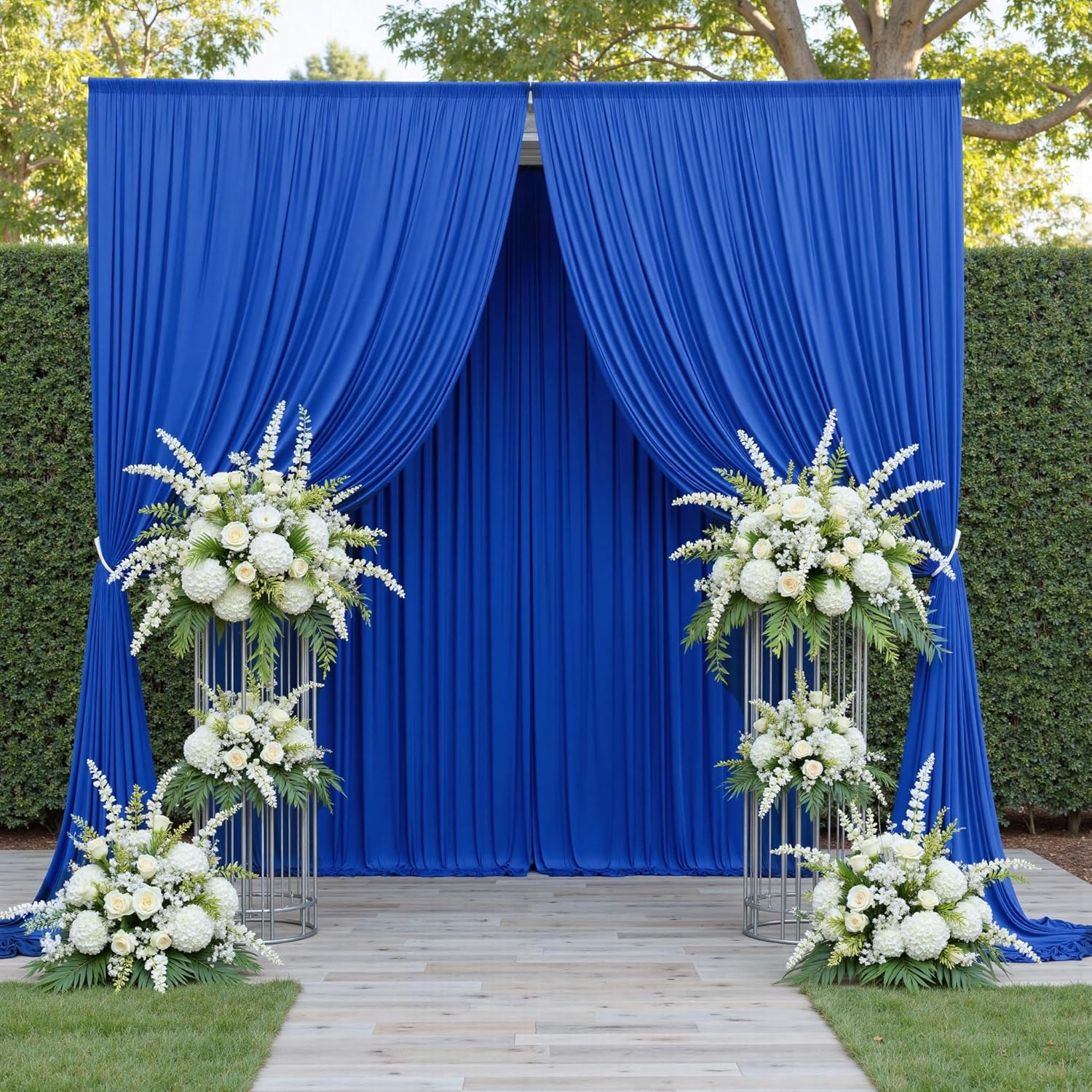 - 10ft Fabric Drape royal blue Backdrop Curtain Wide Compatibility: Polyester photo drape blue backdrop curtain can be used for parties, baby shower, wedding, birthday party, photography, bridal shower, gender reveal, zoom, princess party, engagement party, baptism, candy buffets, dessert table, sweet table, background, photo booths, photoshoot, ceremony, anniversary, graduation, home decorations, holiday party, stage curtain or just to mask unsightly areas