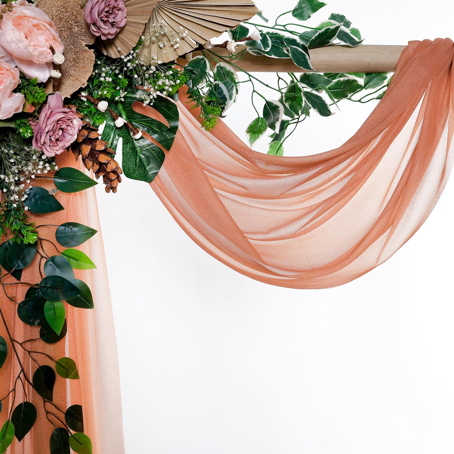 VDS Pack of 3 Panel (30 Inch X 20 Feet) Wedding Arch Draping Fabric Sheer Chiffon Fabric Drapery for Wedding Ceremony Reception Swag Backdrop Canopy Chuppah ARBO Altars Decoration (Coral Peach)