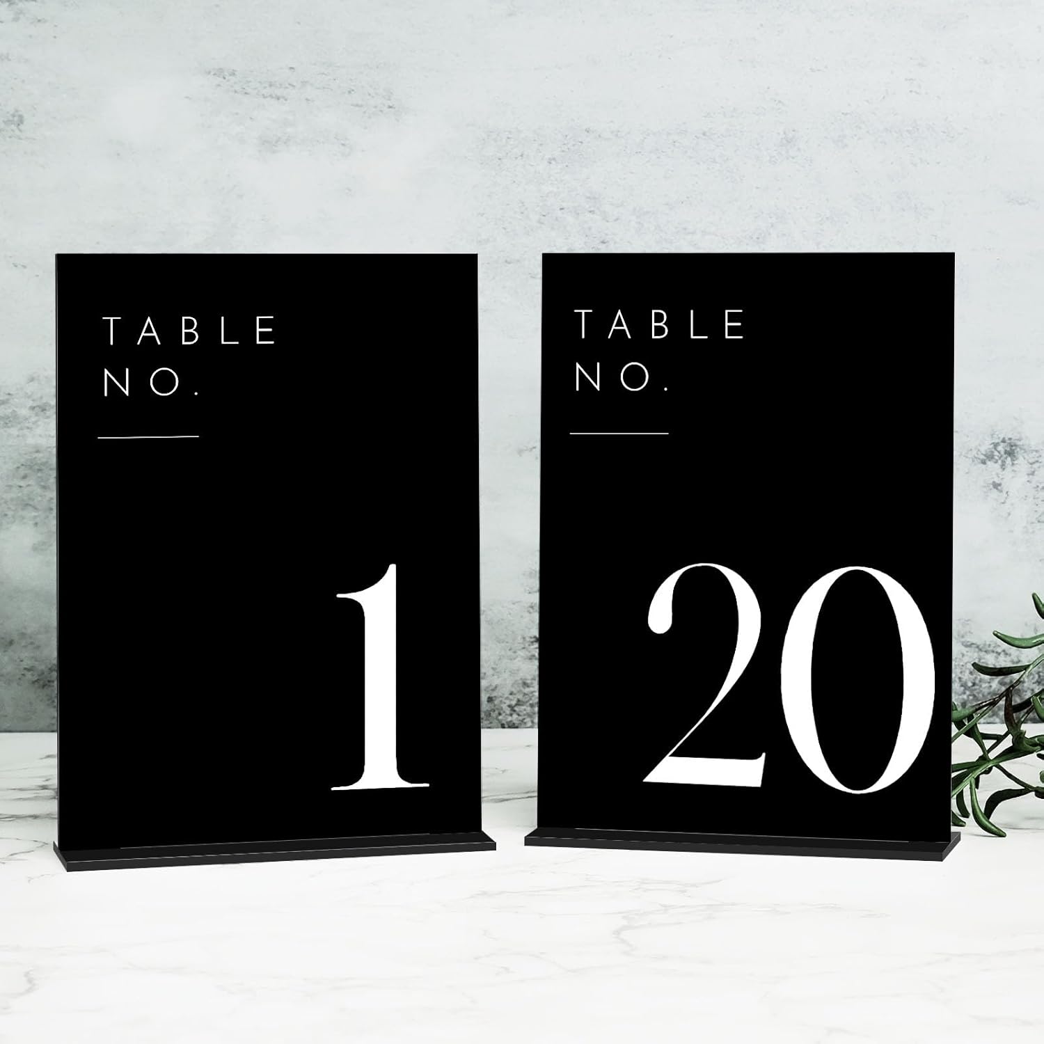- MINIMALISTIC STYLE DESIGN: These modern minimalistic acrylic table numbers are the perfect touch to add to your wedding. We love the sleek, clean lines of these black wedding table numbers, they are a beautiful wedding table centerpieces, perfect for displaying on tabletop centerpiece.