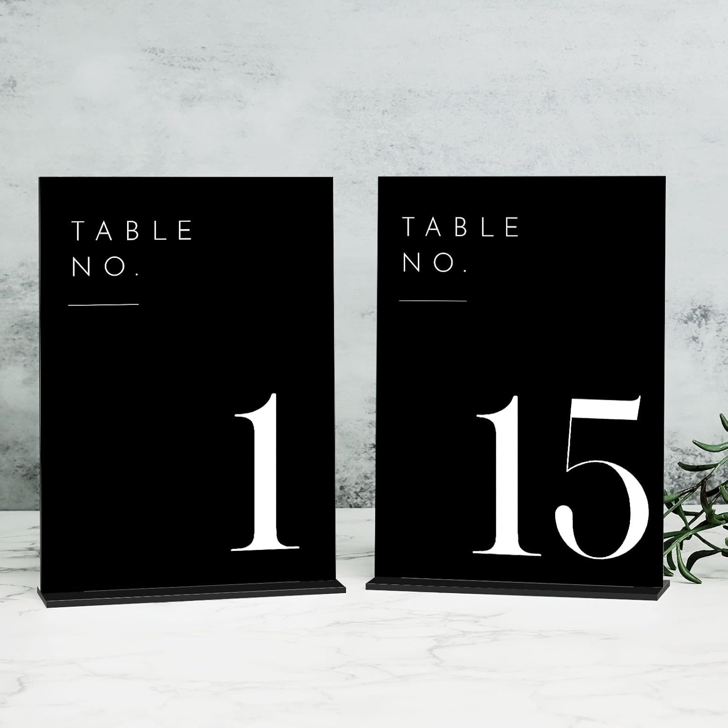 - MINIMALISTIC STYLE DESIGN: These modern minimalistic acrylic table numbers are the perfect touch to add to your wedding. We love the sleek, clean lines of these black wedding table numbers, they are a beautiful wedding table centerpieces, perfect for displaying on tabletop centerpiece.