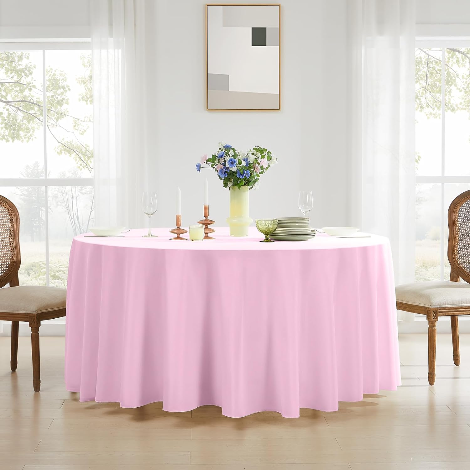 Round Tablecloth 132 Inch 6 Pack Pink Tablecloths Washable Decorative Linen Polyester Table Clothes Cover for Dining Table Banquets Buffet Parties and Wedding