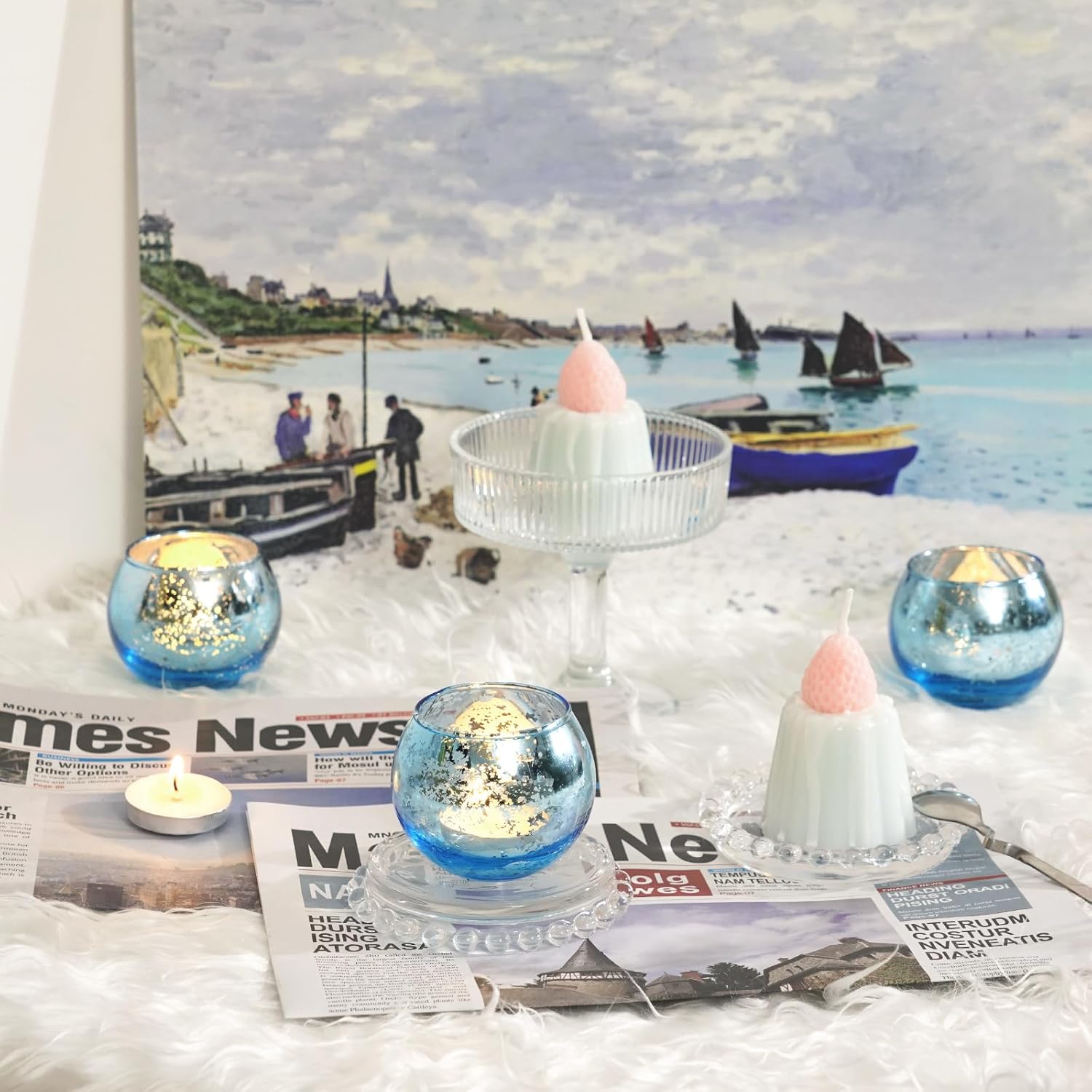 - Elevate Your Ambiance: Our stunning set of 12 blue mercury glass votive candle holders adds a dazzling touch to any setting. Light them up to watch the flickering glow dance, creating a cozy and elegant atmosphere perfect for gatherings, romantic dinners, or peaceful meditation