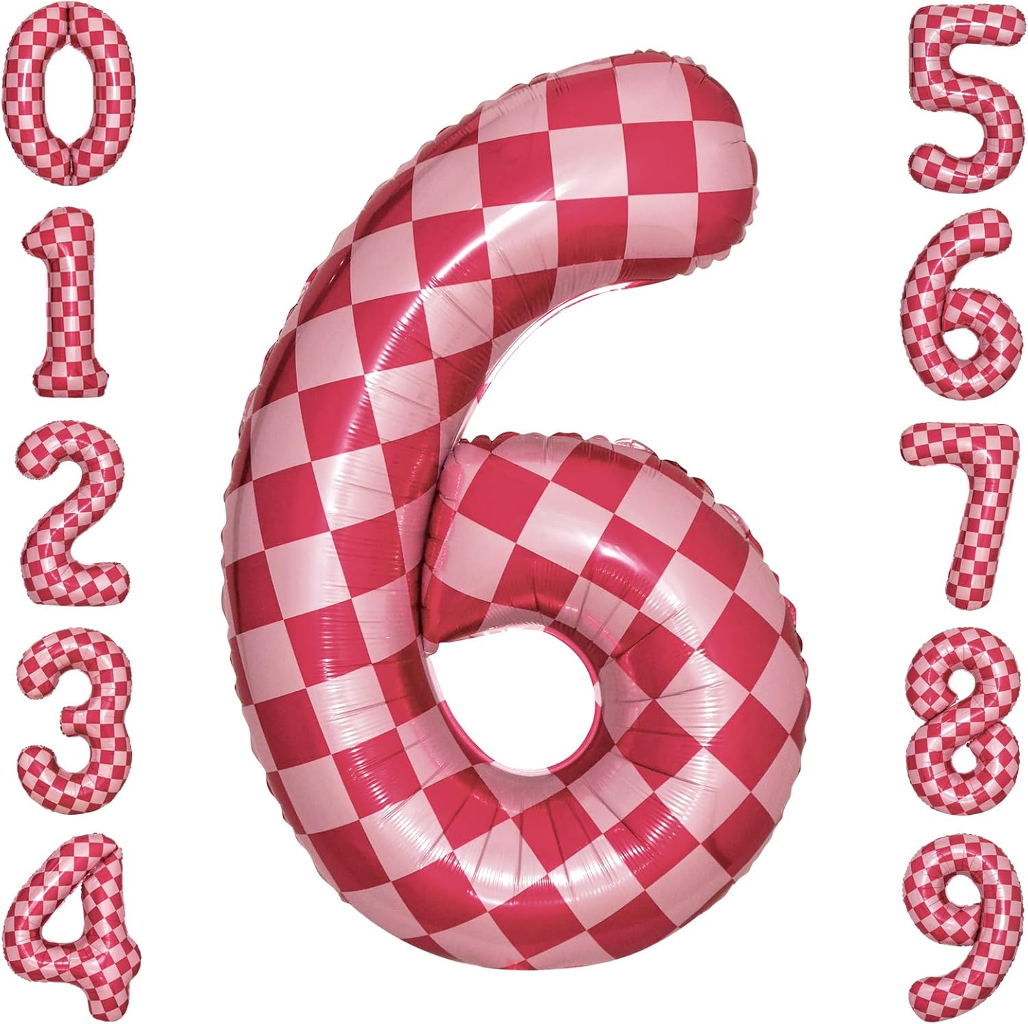 40 Inch Pink Checkered 6 Balloon Large Hot Pink Number Balloons for Girls 6th Birthday Decorations Pink Number 6 Balloon