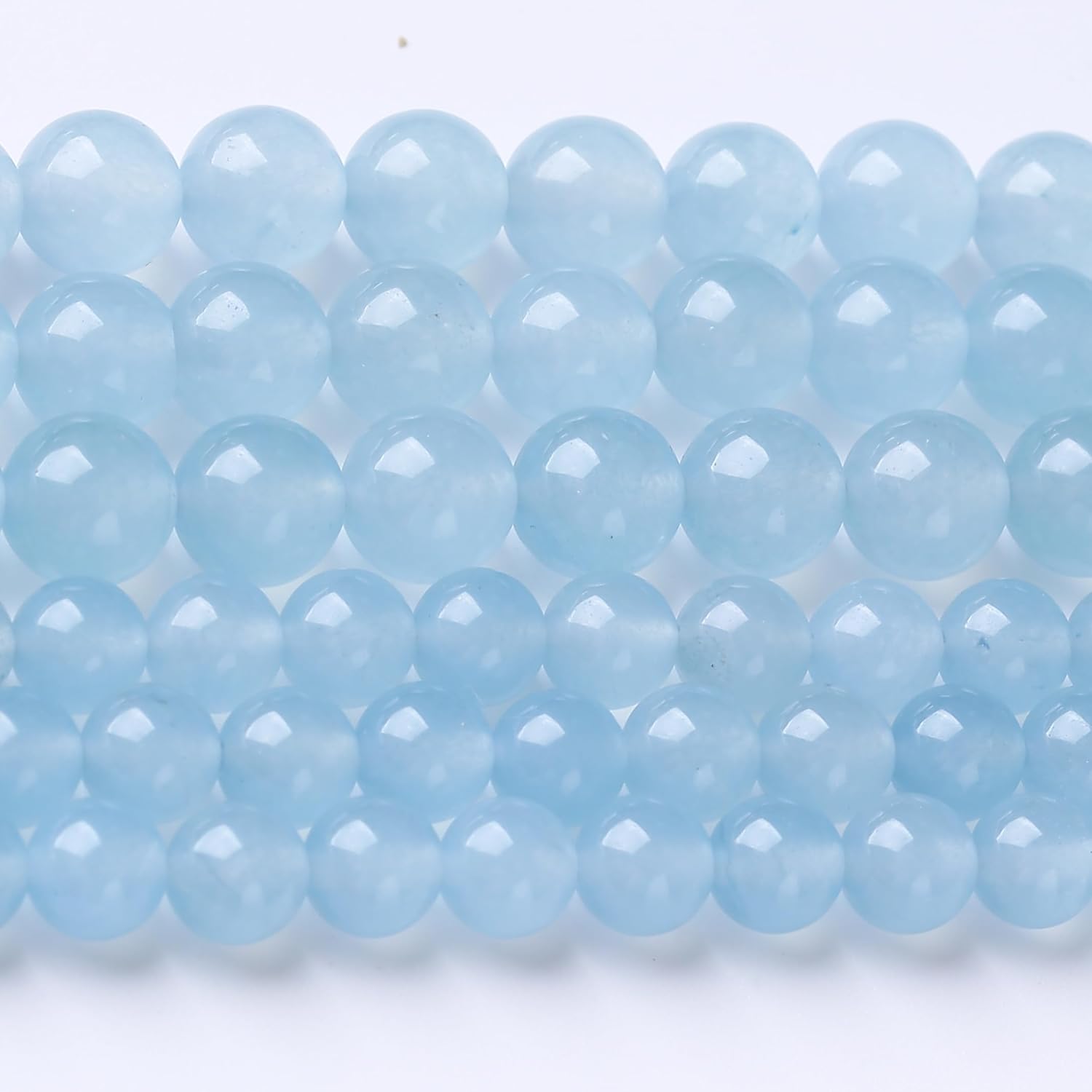 Ice Blue Chalcedony Stone Beads Gemstone Round Crystal Energy Jade Beads Stone Beads for Jewelry Making DIY Bracelet Necklace Jewelry Making 1 Strand 15.5inch 60PCS 6MM