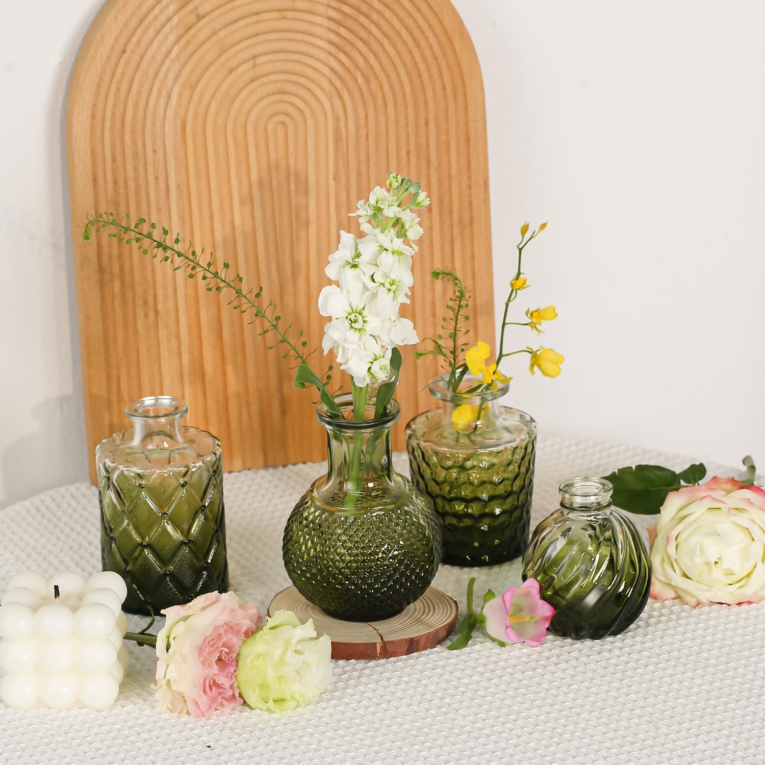 Mini Bud Vases As Wedding Centerpieces for Tables,Clear Bud Vases for Flowers,Small Flower Vases Suitable for Birthday Party,Anniversary,Wedding Reception,Baby Shower (Dark Green, 12PCS)