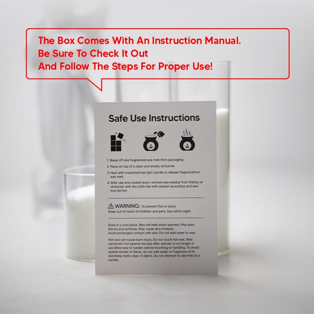 • Long-Lasting Fragrance Each pack of wax melts contains 90g (3.17 oz) of soy wax, with up to 168 hours of burn time per box. Ideal for creating a fragrant atmosphere in your home, office, or any space.