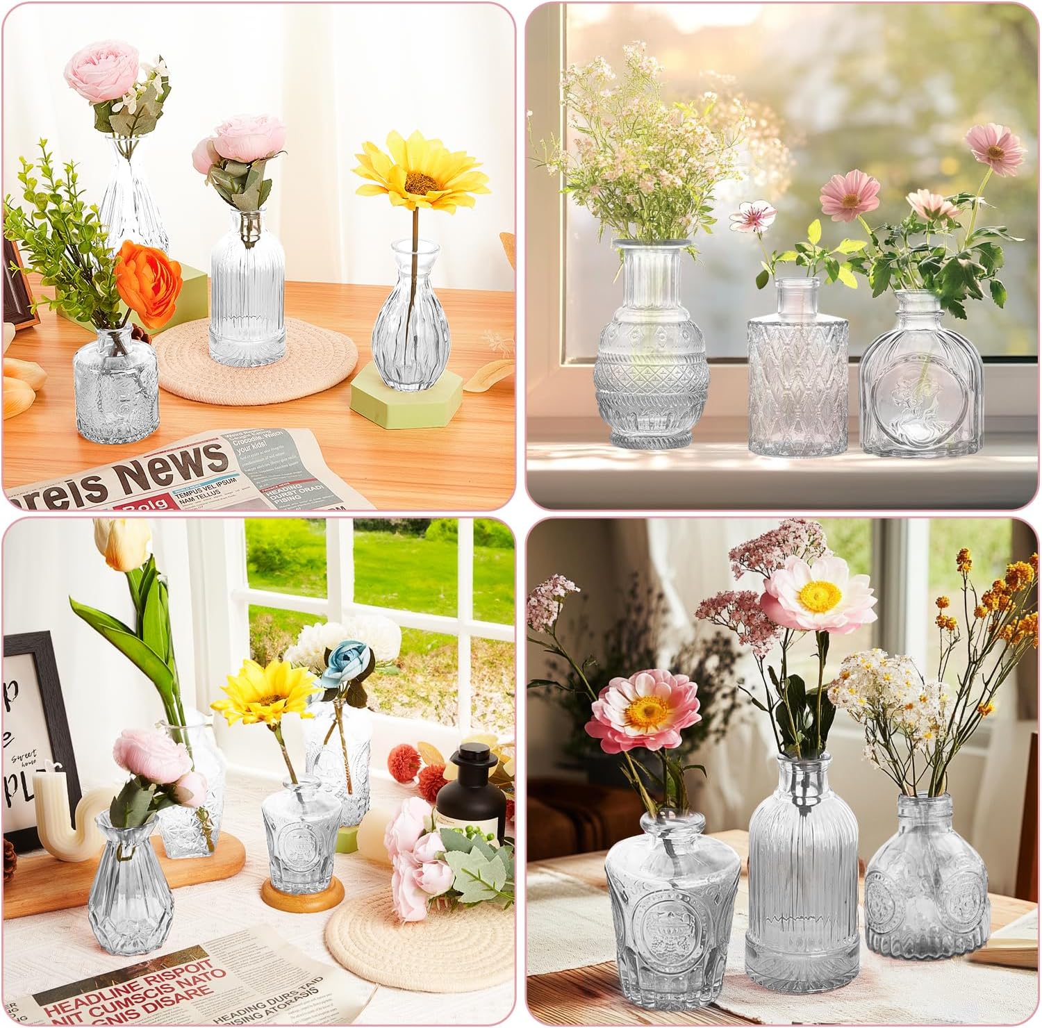- 【Premium Durability & Craftsmanship】Our mini vases for flowers are made of thick glass, hand-blown for smooth finishes, and rigorously drop-tested. Reinforced bases ensure stability, making them sturdier than standard glass vases.the clear color and vintage pattern add a stylish and retro look, showing your unique & elegant taste