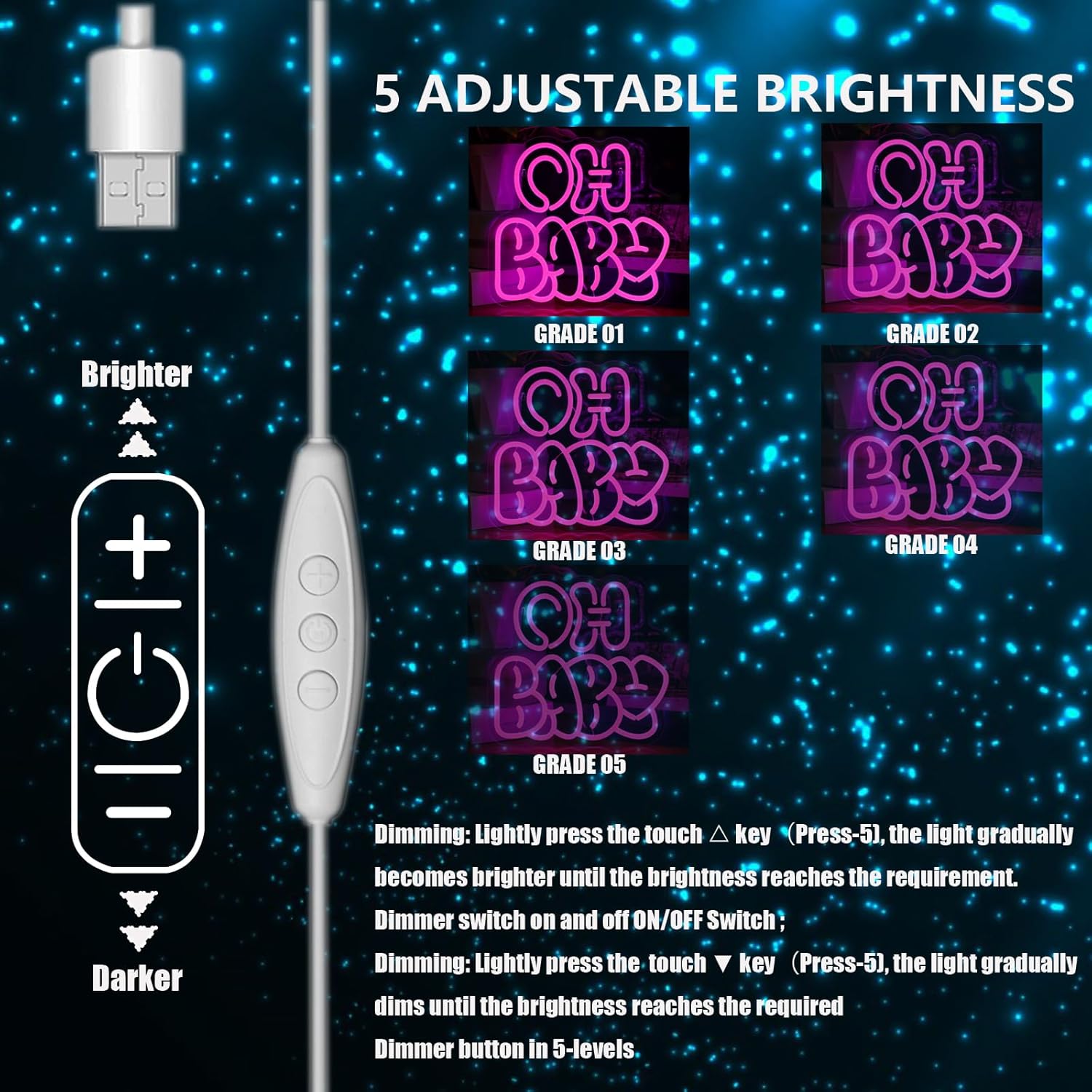 - Material & Safety: Our Oh baby light signs wall decor is Newly developed neon Great quality product with the latest super bright LED lamps and an acrylic back plate, Safe, Energy Saving and Durable. The latest LED neon flex technology which are both stronger & lighter than glass neon.5V voltage LED neon signs.We have adopted a thick power cord to better prevent the power cord from overheating,Vivid LED sign.