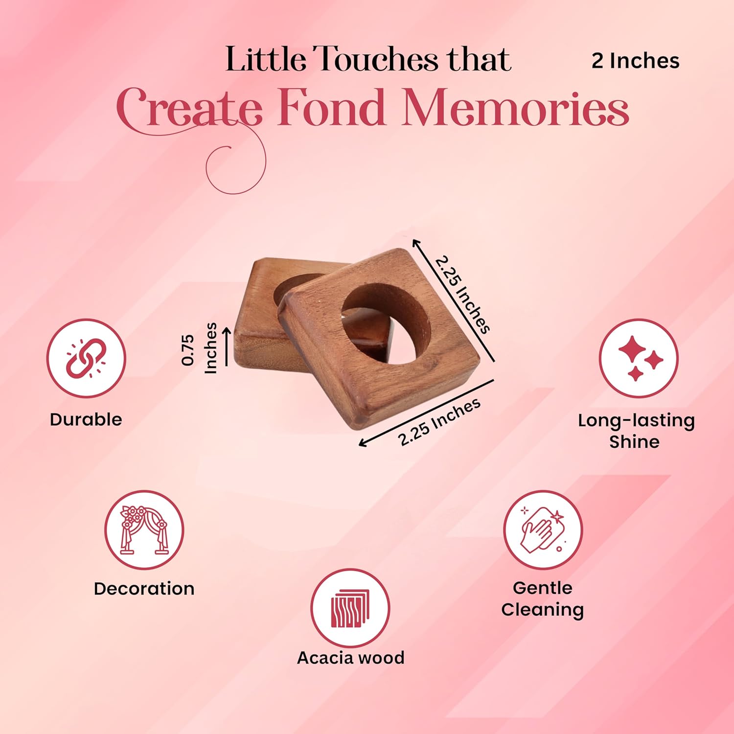 Wooden Napkin Rings Set of 12 Fall Decor for Home Square Acacia Wood Napkin Holders for Dining Table Settings Wood Napkin Ring Rustic Table Décor for Weddings, Parties, and Everyday Use - CLEENTABLE