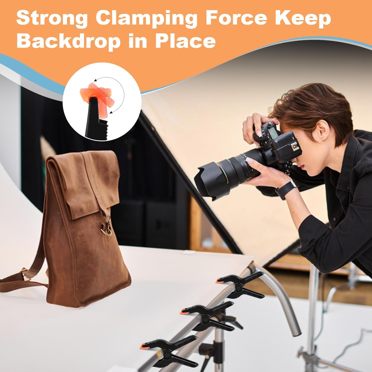 - Flexible Jaw Pads: Plastic clips with 2 flexible orange grippers; fitting well and not easy to fall off; decent gripping power and a wide jaw opening; do not dent the stuff surface; easy to grip and remove; do not slip; handy for many applications