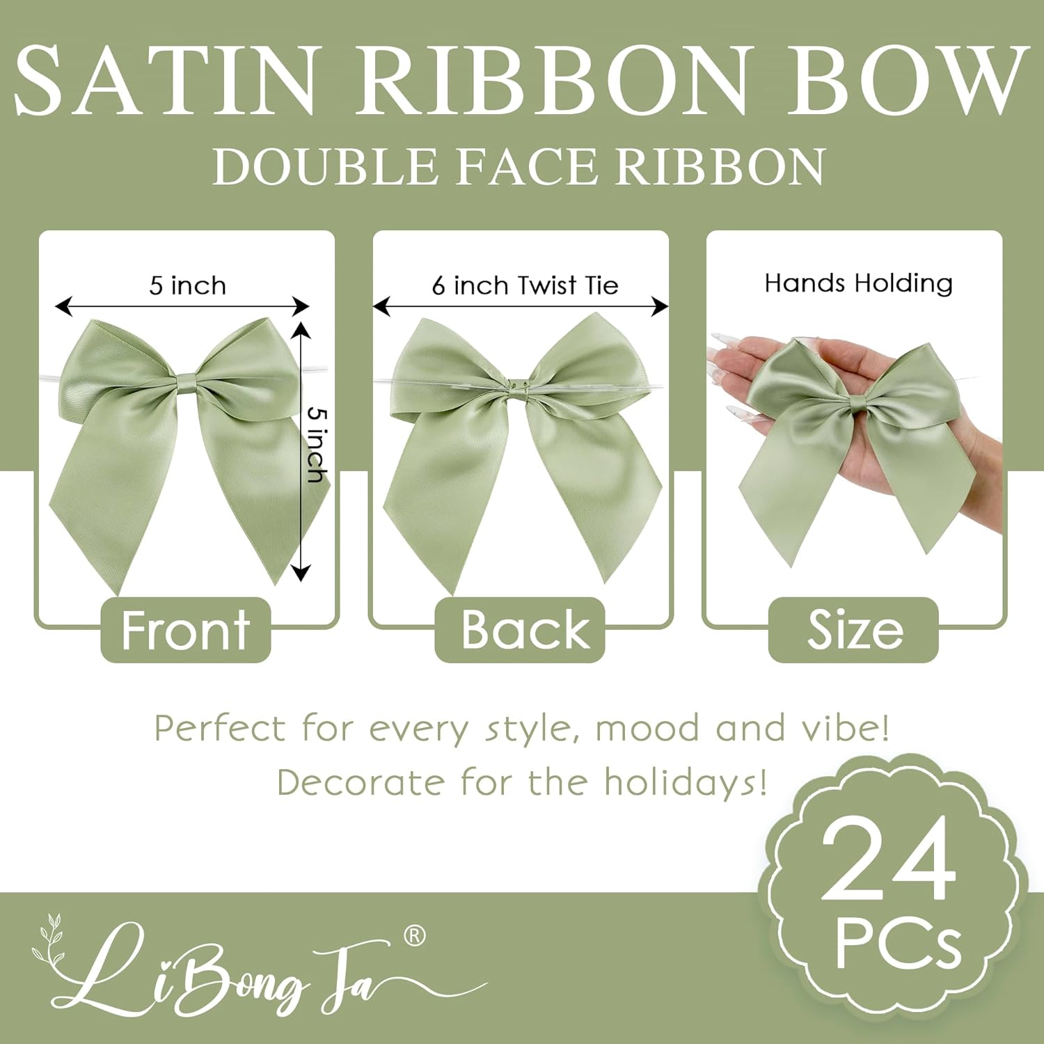 5'' Sage Green Bow Party Decorations Satin Bows, Twist Tie Bows for Treat Bags, Cake Pops, Pre-tied Bow Premade Ribbon Bows for Crafts, Holiday Bows for Gift Wrapping, Wedding Decor-24 Counts