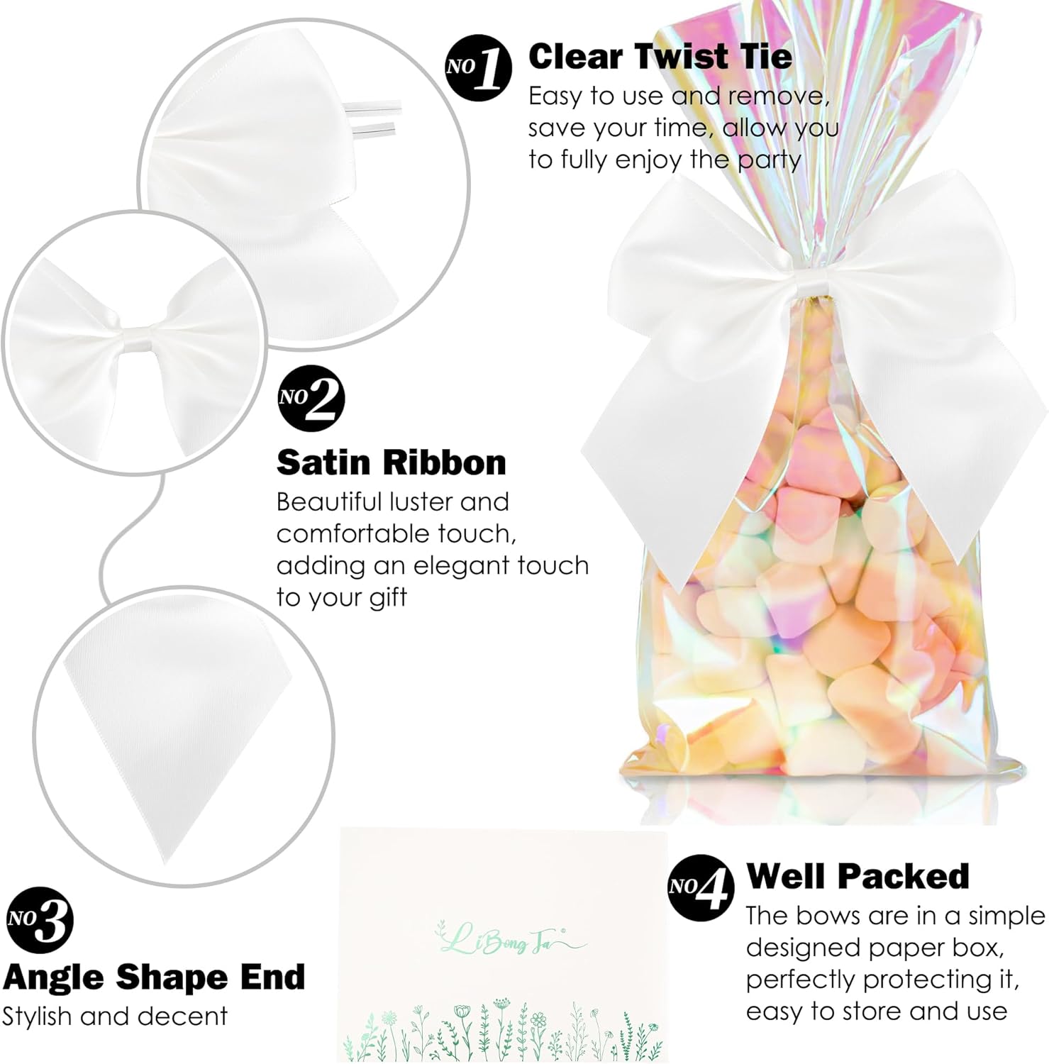 - PERFECT SIZE: These twist ties bows measure approximately 5 inch,the ribbon width is 1 inch, the transparent metal wire measures 4.7 inch, an appropriate size for wrapping gift bags and making crafts. Each bows is unique for handmade.