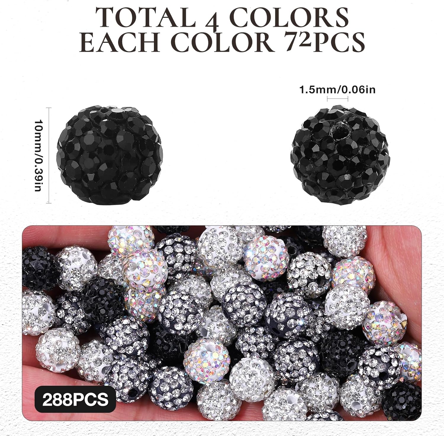 Novani 288pcs 10mm Round Rhinestone Beads for Jewelry Making, Clay Material, Black Color, Sparkle Disco Ball Effect, DIY Bracelet, Necklace, Earring, Christmas Decoration