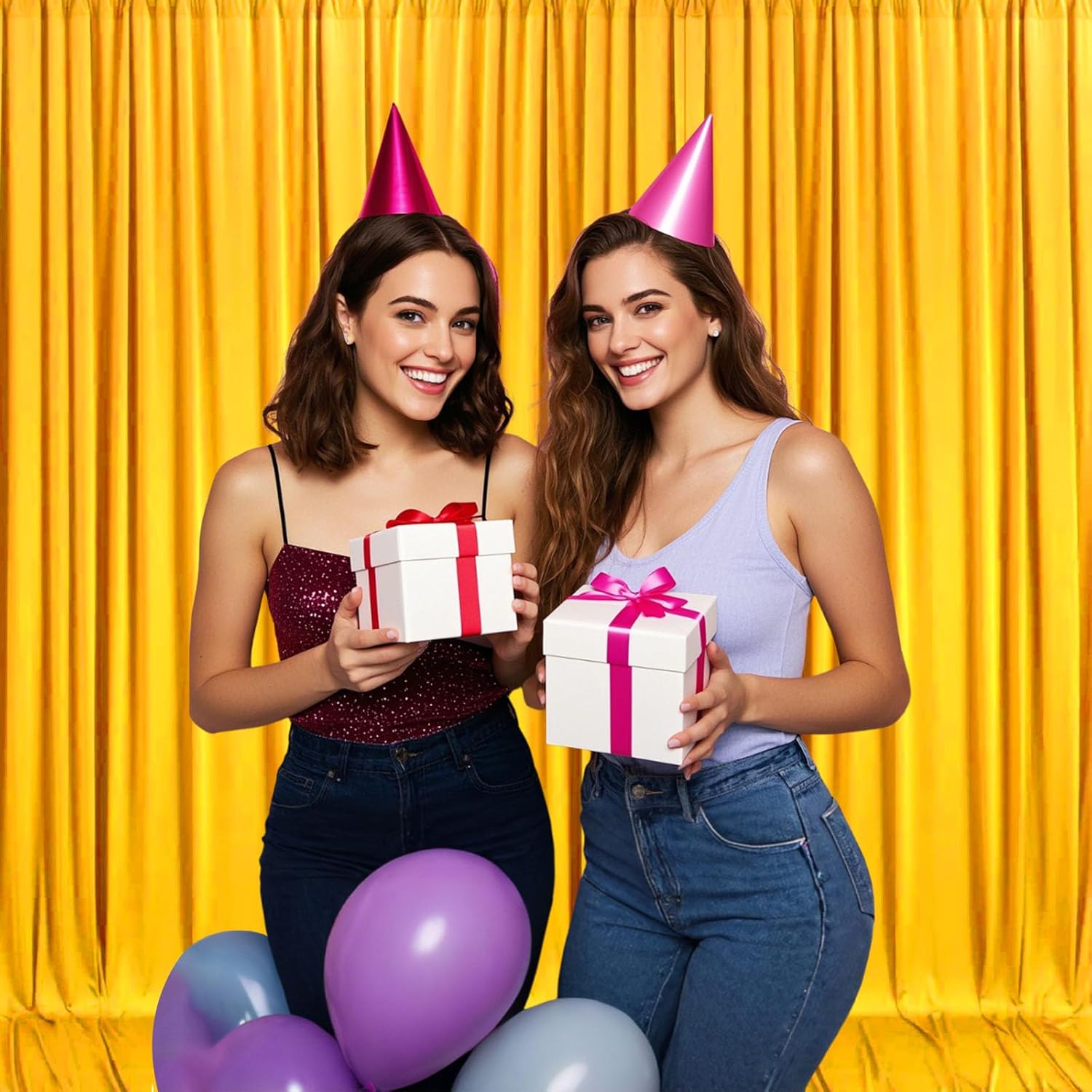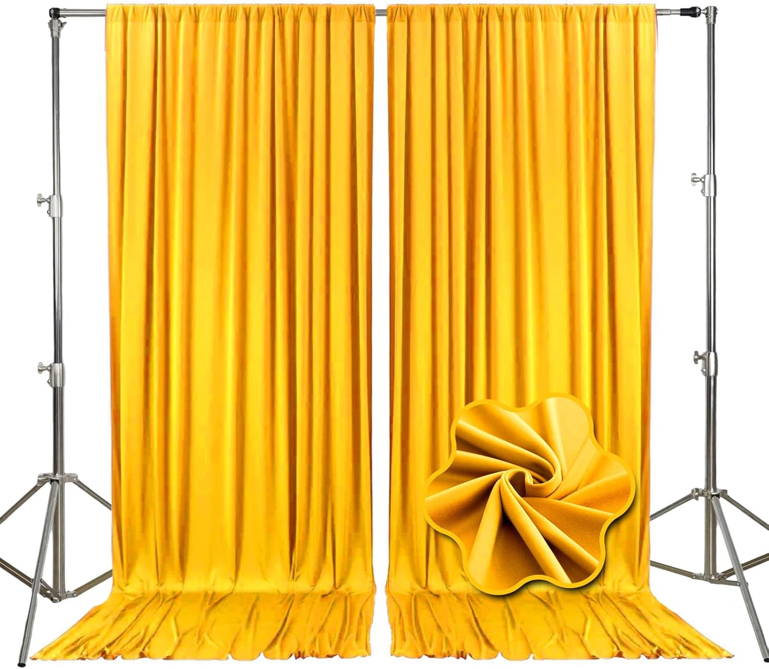 10ft x 10ft Gold Yellow Backdrop Curtains for Parties, Fabric Satin Background Curtain with Rod Pockets for Weddings, Birthday, Baby Shower, Photography, Graduation Party Backdrop Drapes, 2 Panels