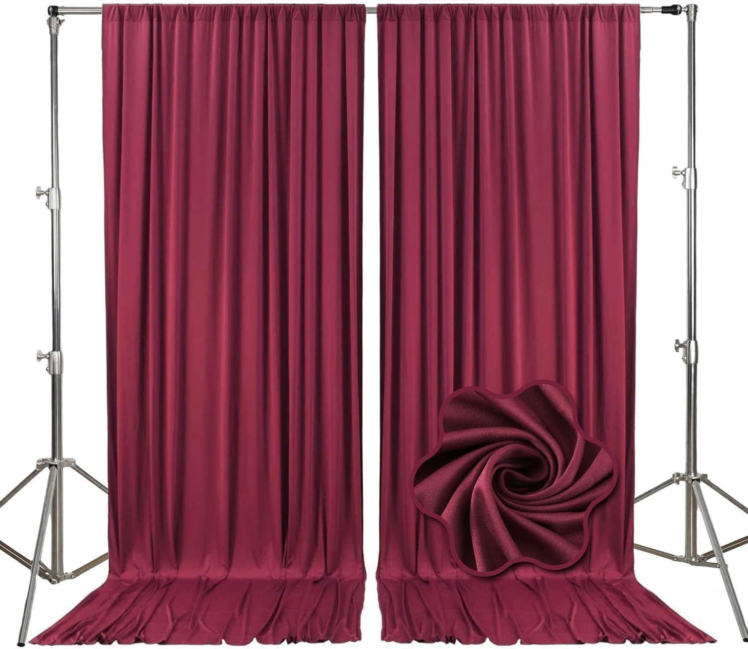 - 【Package Include】Each pack contains 2 panels of fabric shiny satin backdrop curtains. Each backdrop measures 10 feet x 10 feet (60 inches x 120 inches). There is a rod pocket designed on the top of the curtain, allowing you to easily hang it on a pipe or background stand. Tips: ONLY the backdrop curtains, no include a stand.